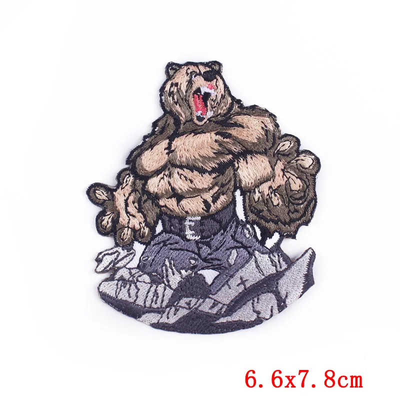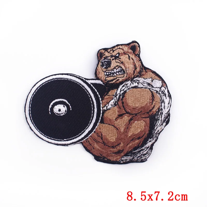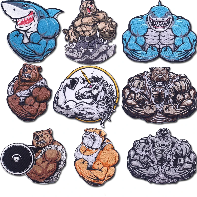 Спортивная аппликация для фитнеса, нашивки с вышитыми животными, нашивки для одежды, наклейки для мышц орангутанга/медведя/акулы/нашивка в лошадью, значки