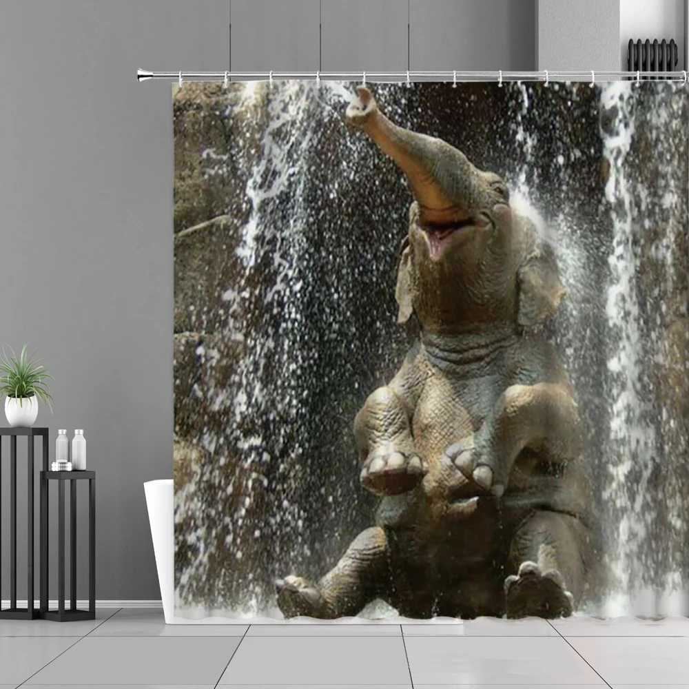 Забавная Штора для душа с изображением слона s 3DAnimal, набор штор для ванной, ванная комната, ванна, Декор, экран, водонепроницаемый полиэстер с крючками