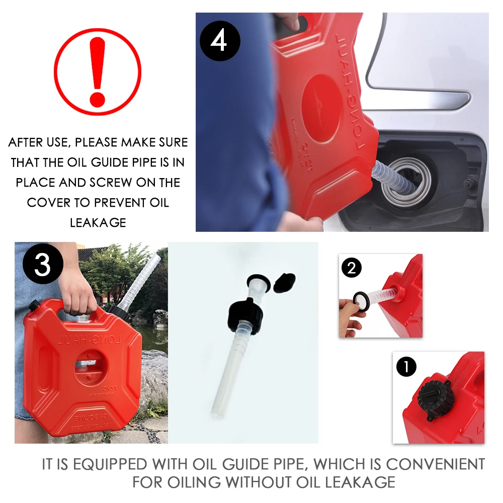 Описание: Товар: пластиковые канистры для бензинового топлива, бензина, масла и газа, контейнер для хранения ковша, Сверхмощный материал: Усовершенствованный инженерный пластик s Объем: 5л Цвет: черный, красный Особенности: Канистра сделана из высокопрочного пластикового материала, масла и антикоррозии, антистатического, анти-ультрафиолетового Канистры подходят для крепления мотоцикла Канистра с встроенной нефтяной трубой (топливная труба) Канистра с вентиляционными отверстиями предназначена для предотвращения обратного потока генерирующего отрицательного давления