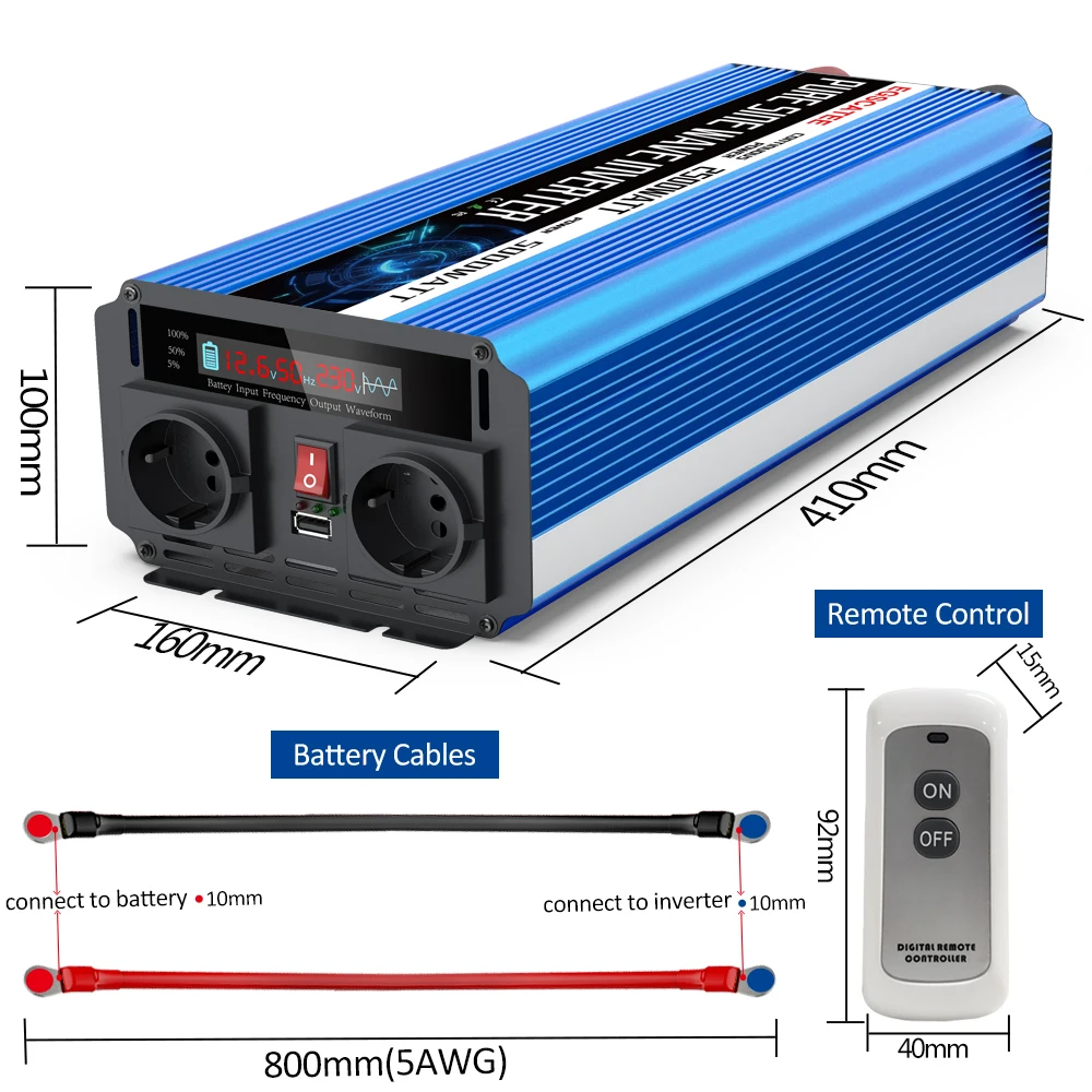 EGSCATEE 5000 Вт 2500 Вт Чистая синусоида Инвертор DC12V 24 В к AC 120 в 220 в 230 в 240 В и беспроводной пульт дистанционного управления USB для автомобиля RV грузовик