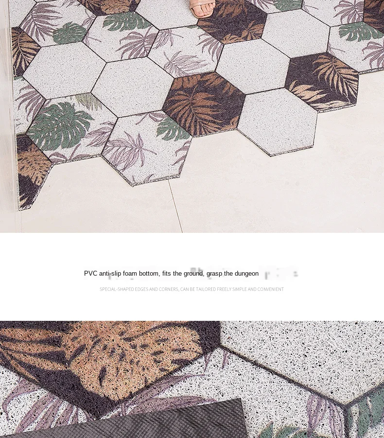 > Дверной коврик из ПВХ с шелковой петлей изготовлен из экологически чистого и безвредного материала. > Толщина дверного коврика составляет около 8 мм, он может полностью лежать на полу и не препятствует открыванию и закрытию двери. > Его можно свободно разрезать на любые формы, которые вы хотите, и подходит для внутреннего и наружного входа, прихожей, фойе и т. д. > Нижняя часть дверного коврика изготовлена из нескользящего материала, чтобы предотвратить скольжение дверного коврика и защитить вашу безопасность. > Материал выше может поглощать влагу от обуви, чтобы сделать полы чистыми и сухими, а также удалять пыль, грязь, снег и т. д. > Когда коврик заполнен частицами грязи, вы можете просто очистить его с помощью пылесоса, или вы можете использовать садовый шланг в краску, затем дайте дверному коврику полностью высохнуть на воздухе перед следующим использованием. > Наш коврик может быть настроен в соответствии с размером дверного входа, пожалуйста, свяжитесь с нами, если вам нужно настроить.