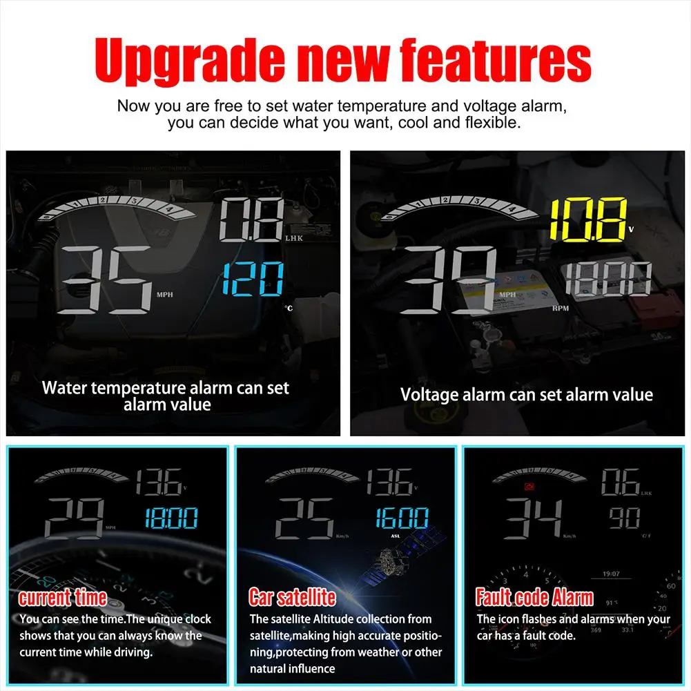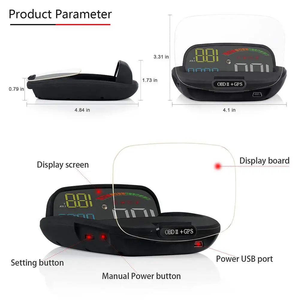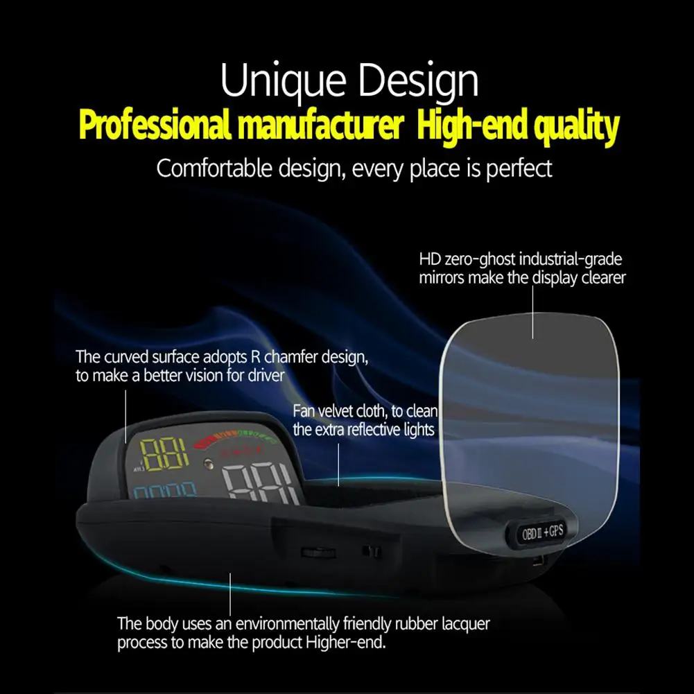 HUD короткий для дисплея головы вверх. Он отображает данные вождения на лобовом стекле автомобиля, такие как скорость, об/мин, температура воды, расстояние поездки и т. Д.; Избегая водителей небезопасно из-за просмотра инструмента во время вождения. Водители могут мгновенно считывать информацию о вождении и всегда держать лучшее состояние на пути с HUD.