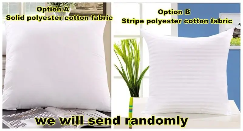 Если вы хотите, чтобы ваши подушки выглядели пышно, пожалуйста, выберите внутренний размер больше, чем Наволочка на 3-5 см.Внутренняя подушка размер 35х35см, подходит для наволочки размер: 30х30смВнутренняя подушка Размер 40х40см, подходит для наволочки размер: 35х35смВнутренняя подушка размер 45х45см, подходит для наволочки размер: 40х40смРазмер внутренней подушки 50x50 см, подходит для наволочки размер: 45х45смВнутренняя подушка размер 55x55 см, подходит для наволочки размер: 50х50смВнутренняя подушка размером 60x60 см, подходит для наволочки размером: 55х55смВнутренняя подушка размер 65x65 см, подходит для наволочки размер: 60х60смВнутренняя подушка размер 70x70 см, подходит для наволочки размер: 65х65смВнутренняя подушка размер 35x55 см, подходит для наволочки размер: 30x50 смЗакончено с 5 нитями оверлок стежки для полного предотвращения износаНаполнитель из 100% мягкого полиэфирного волокна с прочным защитным покрытием из 70% полиэстера/30% хлопка. Добавьте немного очарования и комфорта в ваши комнаты с новыми подушками, покрытыми красивыми тканями и элегантно обшитымиДля использования со всеми типами Шамс и чехлов, будет выглядеть превосходно в любом декоративном наволочкеВысококачественное долговечное наполнение полиэфирным волокном, предназначенное для пополнения воздухом, которое позволяет подушки накапливаться.Упругий/плавныйДля использования в помещении или на открытом воздухе shams и декоративная наволочка.У нас есть вариант однотонного полиэфирного хлопка и Вариант B в полоску полиэфирного хлопка, Обычно мы отправляем случайным образом, если у вас есть особые требования, пожалуйста, оставьте нам сообщение, спасибоУсловия оплаты
