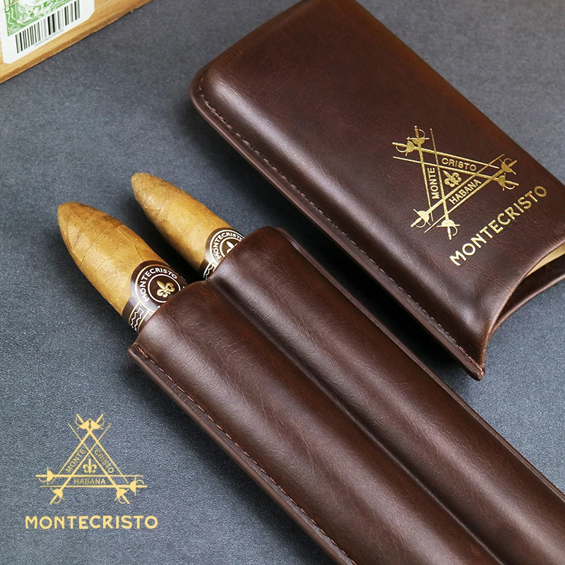 Новинка, Дорожный Чехол Монтекристо из коровьей кожи с 2 сигарами, чехол для курительной трубки, сумка-хьюмидор, подходит для сигар COHIBA CE-010