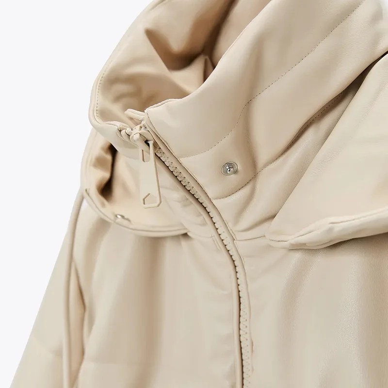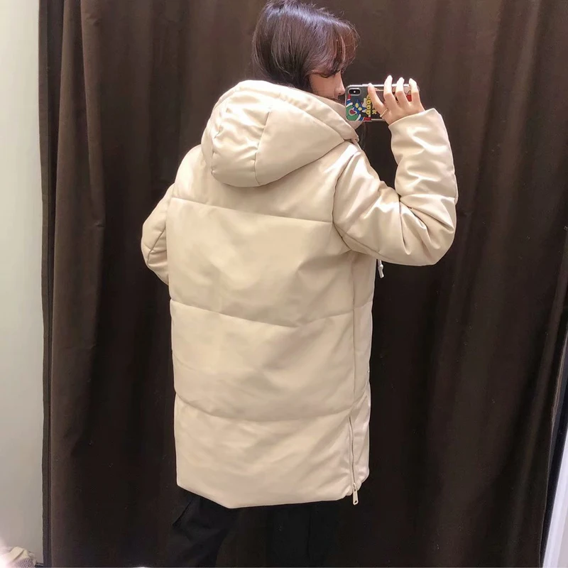 Зимнее пальто, Толстая теплая парка из искусственной кожи с капюшоном, пальто, женская Свободная хлопковая куртка на молнии, верхняя одежда, женское длинное пальто оверсайз