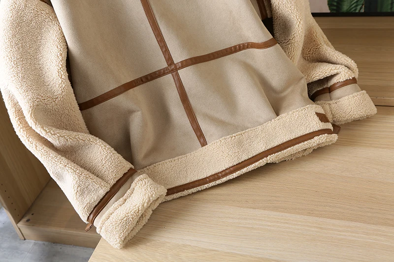 Новинка, зимняя женская толстая винтажная куртка из замши, свободное теплое пальто из овечьей шерсти, Байкерская верхняя одежда, Женское пальто из искусственной кожи большого размера