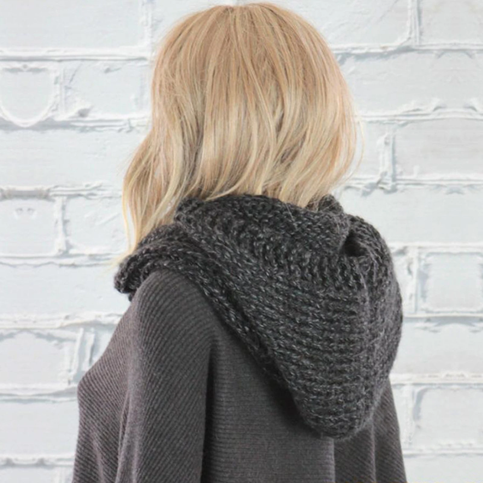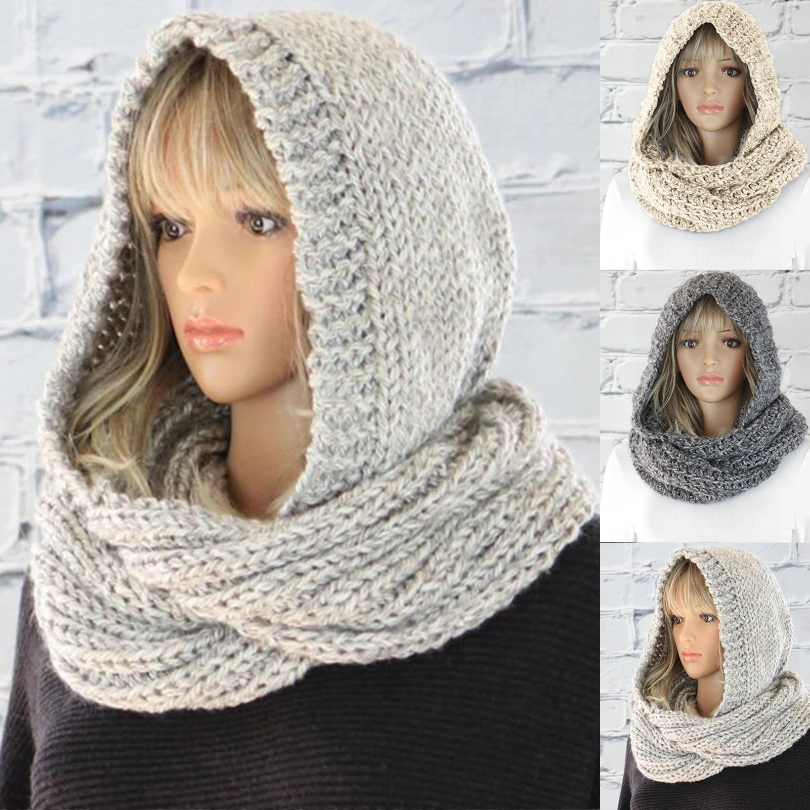 Осенне-зимняя женская однотонная теплая вязаная шерстяная пряжа с капюшоном, накидка на шею