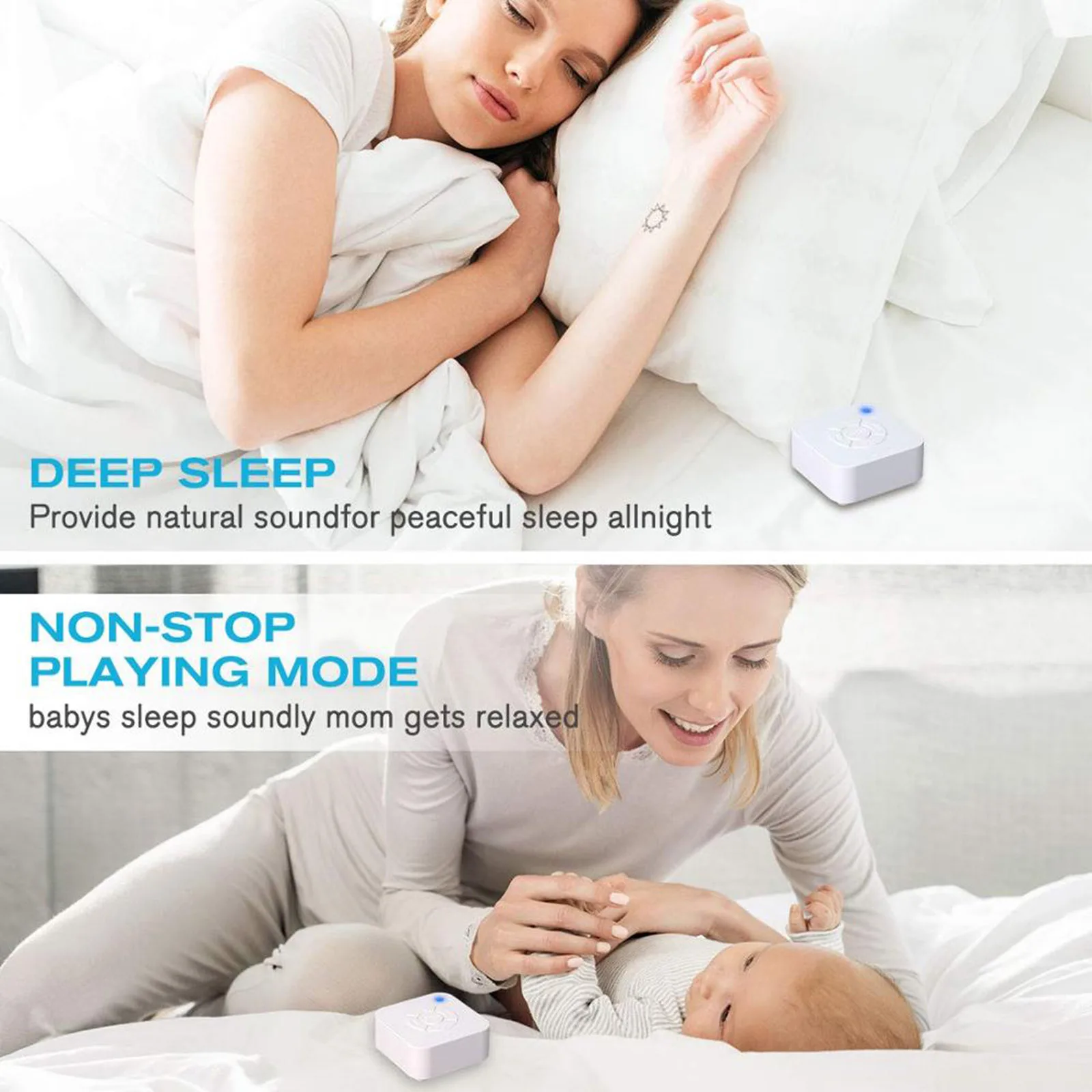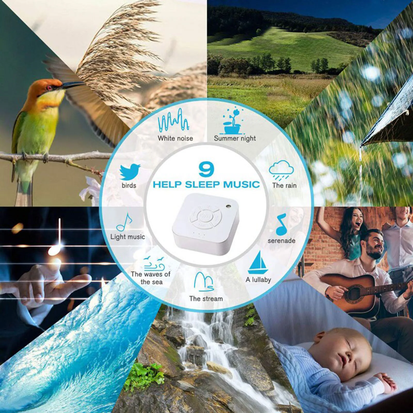 Поставляется с 9 видами гладких и естественных звуков, вы можете выбрать тот, который вы хотите создать атмосферу тишины для вас, чтобы быстро заснуть и полностью отдохнуть.