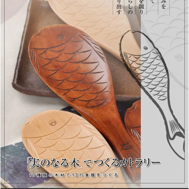Хороший помощник для горшка, шпатель для риса из натурального дерева в форме рыбы