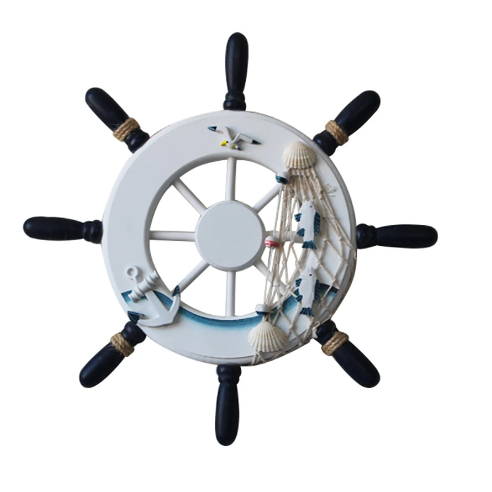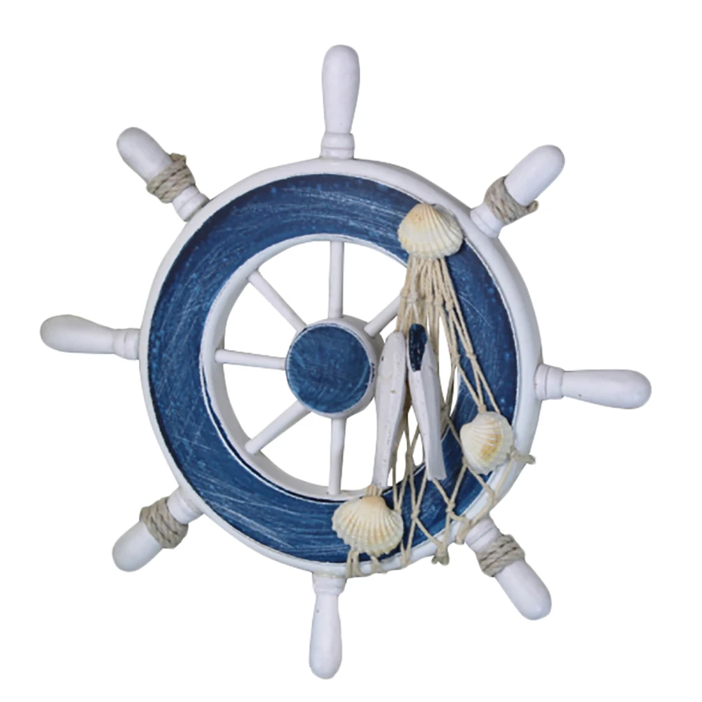 Есть восемь спиц, окрашенных в светло-голубой и белый цвет, окружающие его и легко монтируемые к стене, требующей пляжного украшения.