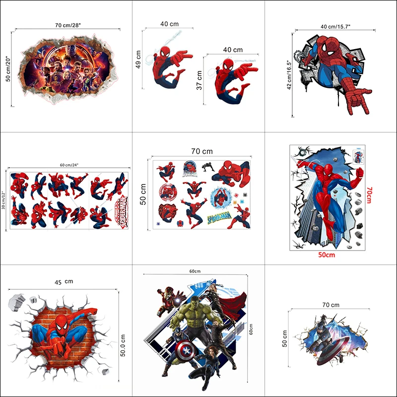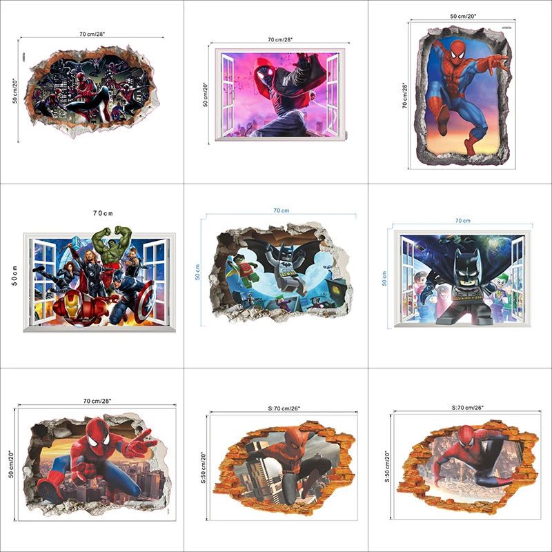 Marvel, Супер герои, разбитые наклейки на стену, отверстия для детской комнаты, домашний декор, Человек-паук, Бэтмен, Железный человек, Халк, Мстители, настенные наклейки