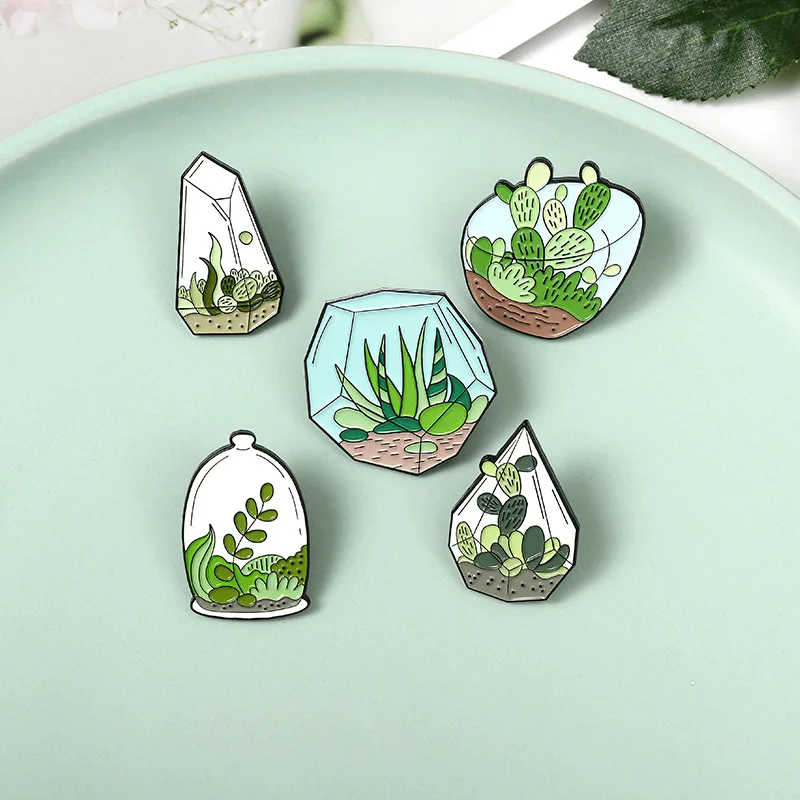 Булавки металлические растения в горшке кактус алоэ брошь для пальто Эмаль Булавка женские броши нашивки на рюкзаке значок подарки на новый год