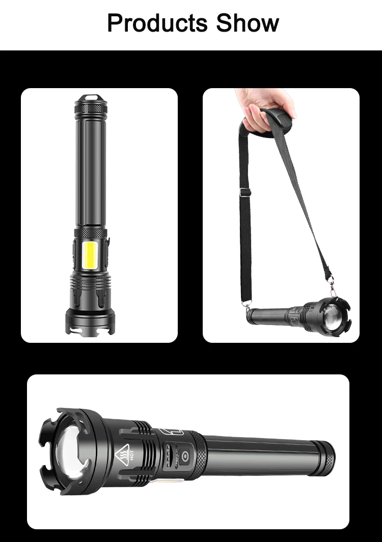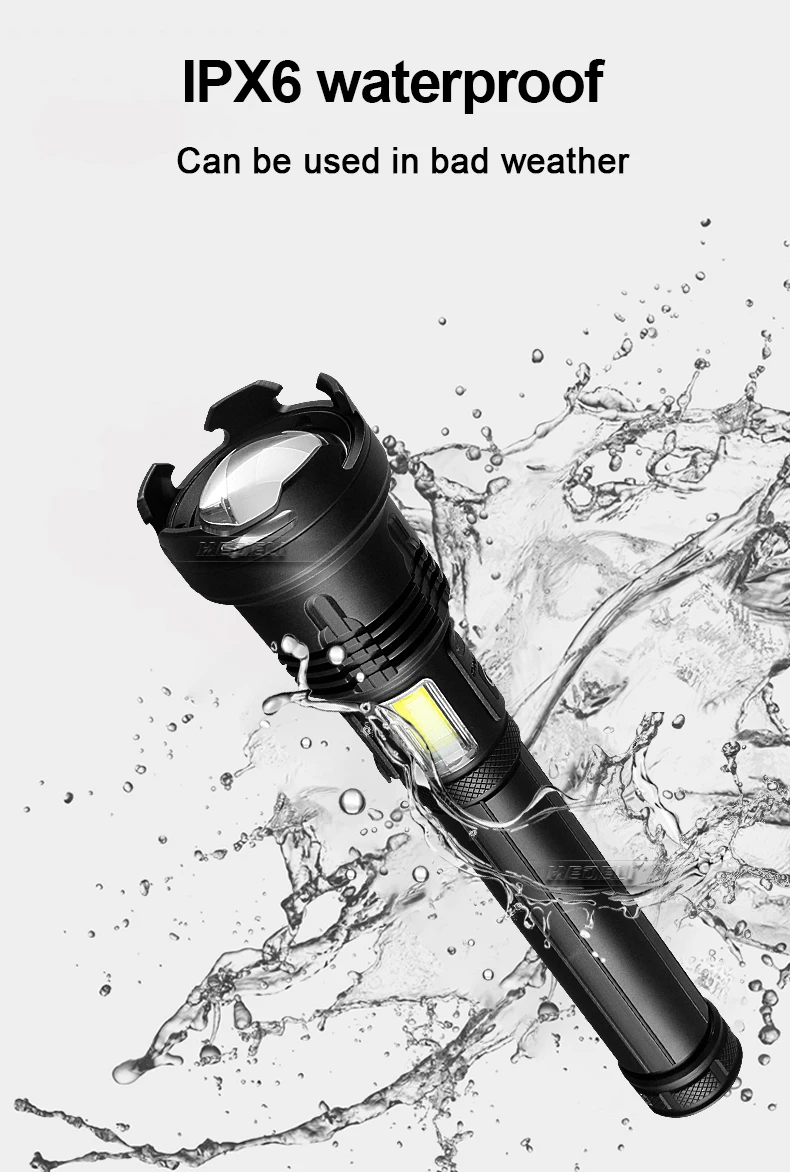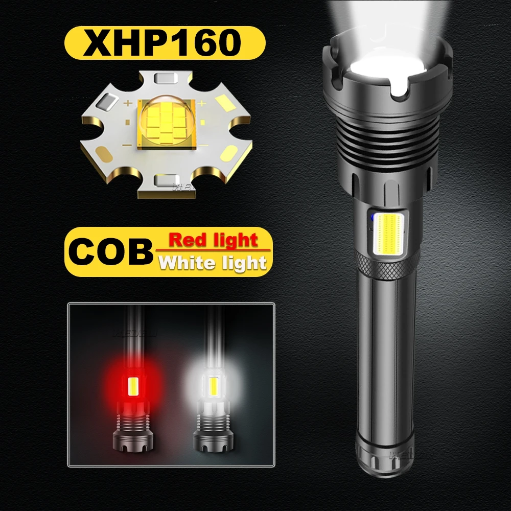• Режим переключения: 3 режима XHP100 LED (высокий-низкий-SOS ) + 4 режима COB (белый свет 100%-белый свет 50%-красный светильник 100%-красный светильник SOS)
