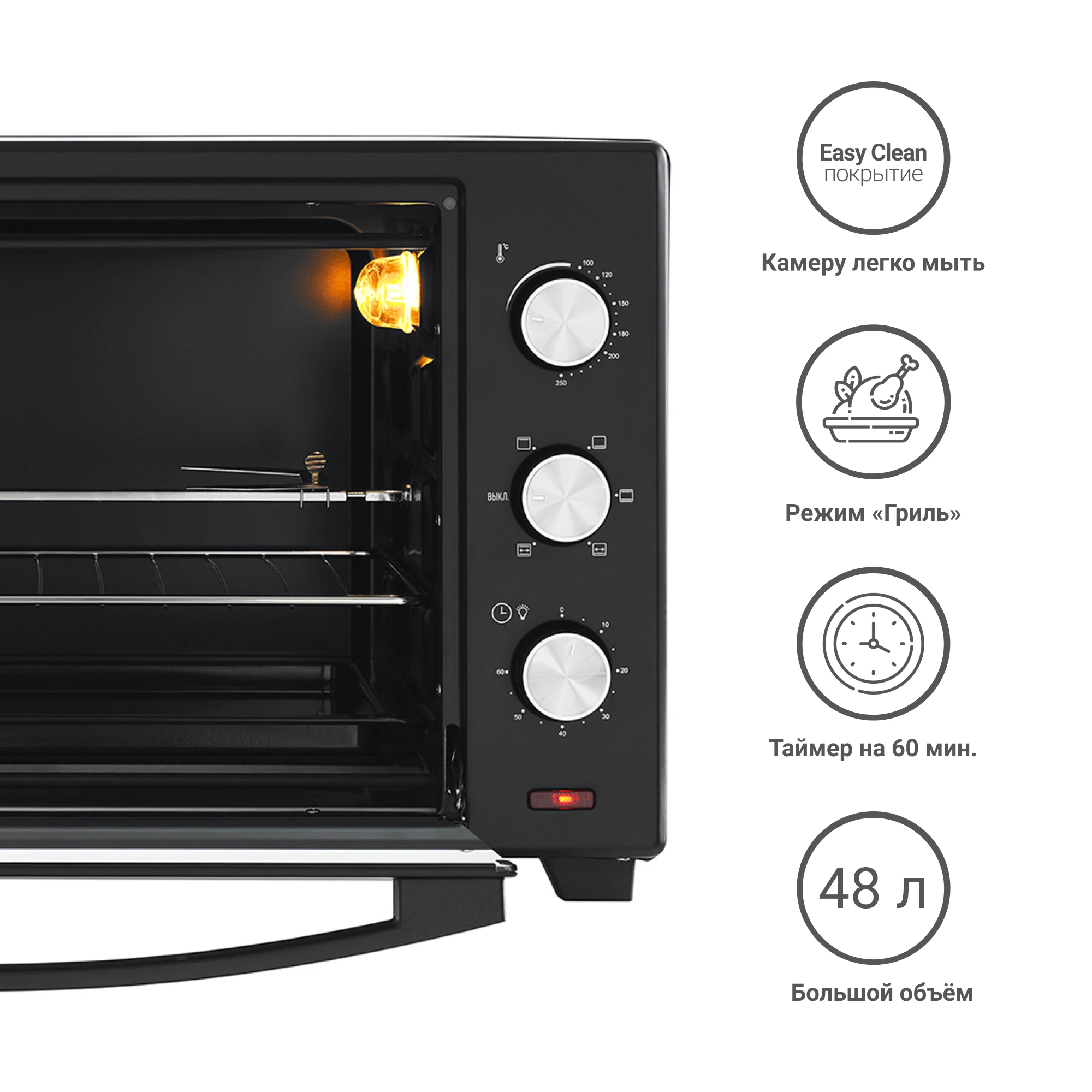 Быстро приготовить картофель или курицу до румяной корочки, или испечь потрясающий торт теперь не проблема – мини-печь Tesler EOG-4800 в стильном корпусе черного цвета готова на любые гастрономические эксперименты!