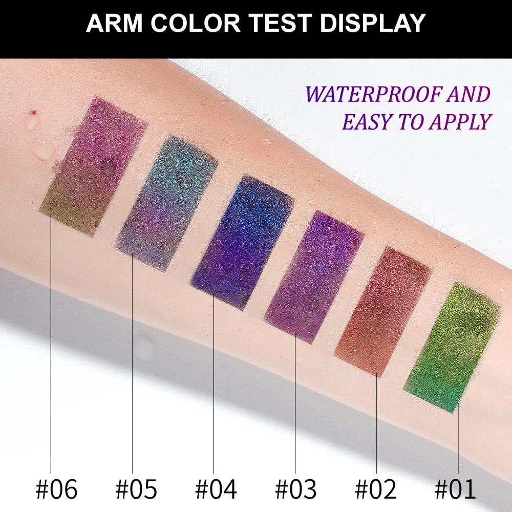 Вечерние блестящие тени для век, меняющие светильник! Уникальная формула создает отражающие размеры сразу же, как молочный путь, с интенсивным цветом для наиболее легкого, утонченного вида. Это отражает разные цвета в соответствии с различными светильник углов. Красивая конструкция, прозрачная формула кремовая и невесомая, плавно скользит по крышкам перед сушкой для очень гладкой, ультра-удобной носки. Это защита от пота и водонепроницаемость, так что вам не придется беспокоиться о том, что ваш макияж сойдет в непогоду.