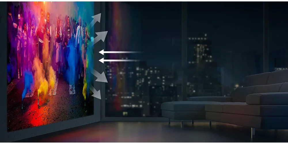 По сравнению с самостоятельно светящимся изображением, диффузное отражение более мягкое, и трудно чувствовать усталость при длительном наблюдении за глазами, что подходит для здорового режима просмотра всей семьей
