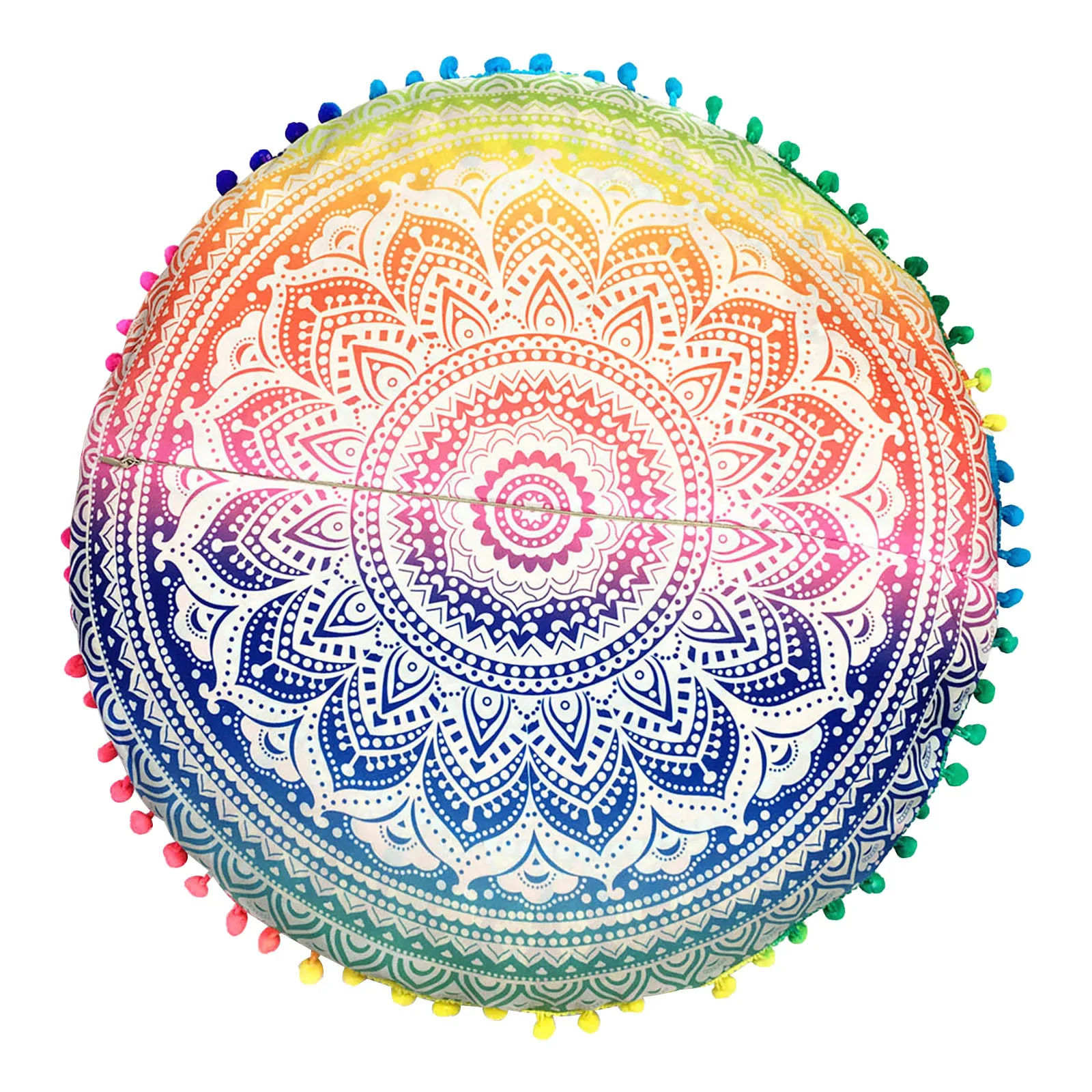 Привнесите цвет в ваш дом Для весны с этой супер groovy круглой формы пол подушки пуфы с счастливым Границы с помпоном. Представляем, как двигаются обеденные вечеринки на пол, разваливаясь в Чтение книги, или создание волшебной, удобной игровой комнаты или просто Кто любит сидеть или лежать на полу, это действительно легко, декоративно и Удобные подушки-отличная идея. Идеально подходят для чтения, медитации или Просто расслабляйтесь! С нашей гигантской напольной подушкой, сделанной с использованием ваших любимых Ткань Мандала! Эти мечты теперь реальны! Мягкие, удобные и О-очень красивый, круглый подушки для пола, которые отлично подходят сами по себе.