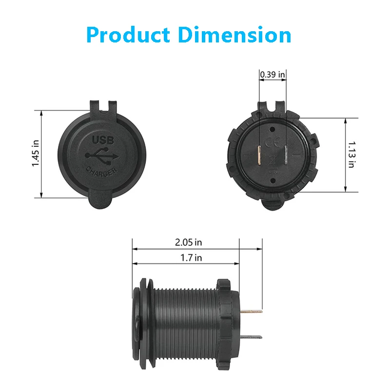 Диаметр отверстия 1,14 дюйма. Подходит для большинства транспортных средств приборной панели и панели перекидного переключателя. "+" ДО положительного полюса, "-" до отрицательного полюса. Плотно прилегающая крышка защищает usb-порты, когда они не используются. Кроме того, он может быть подключен к выключателю вкл/выкл, затем вы можете выключить его, чтобы сэкономить энергию.