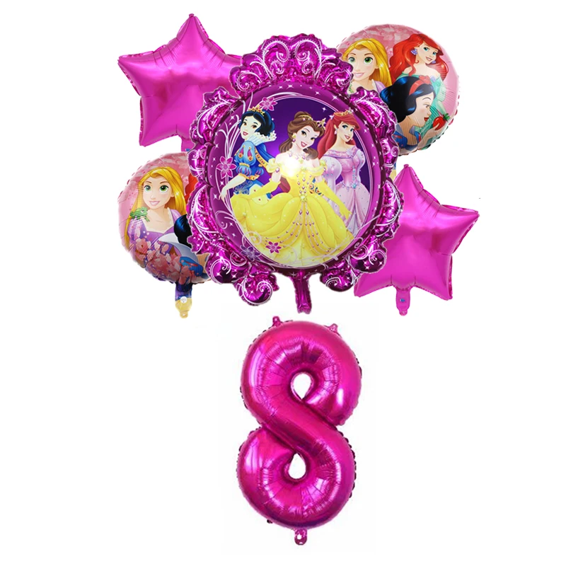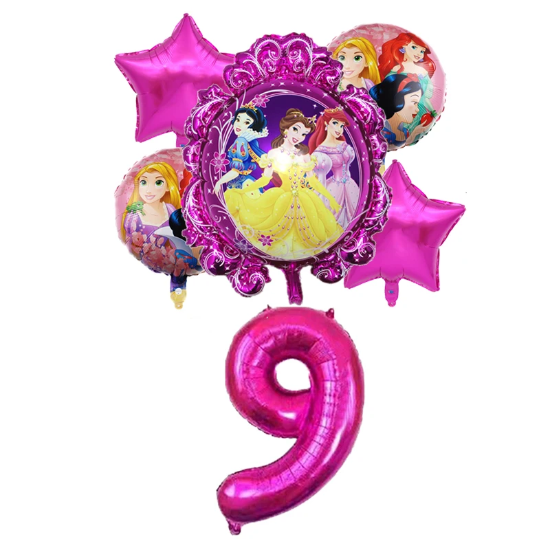 6pcs Disney Three Princess Cake Foil Balloons Baby Girls Birthday Decoration Party 32inch Number Balloon Set Children's Day Gift