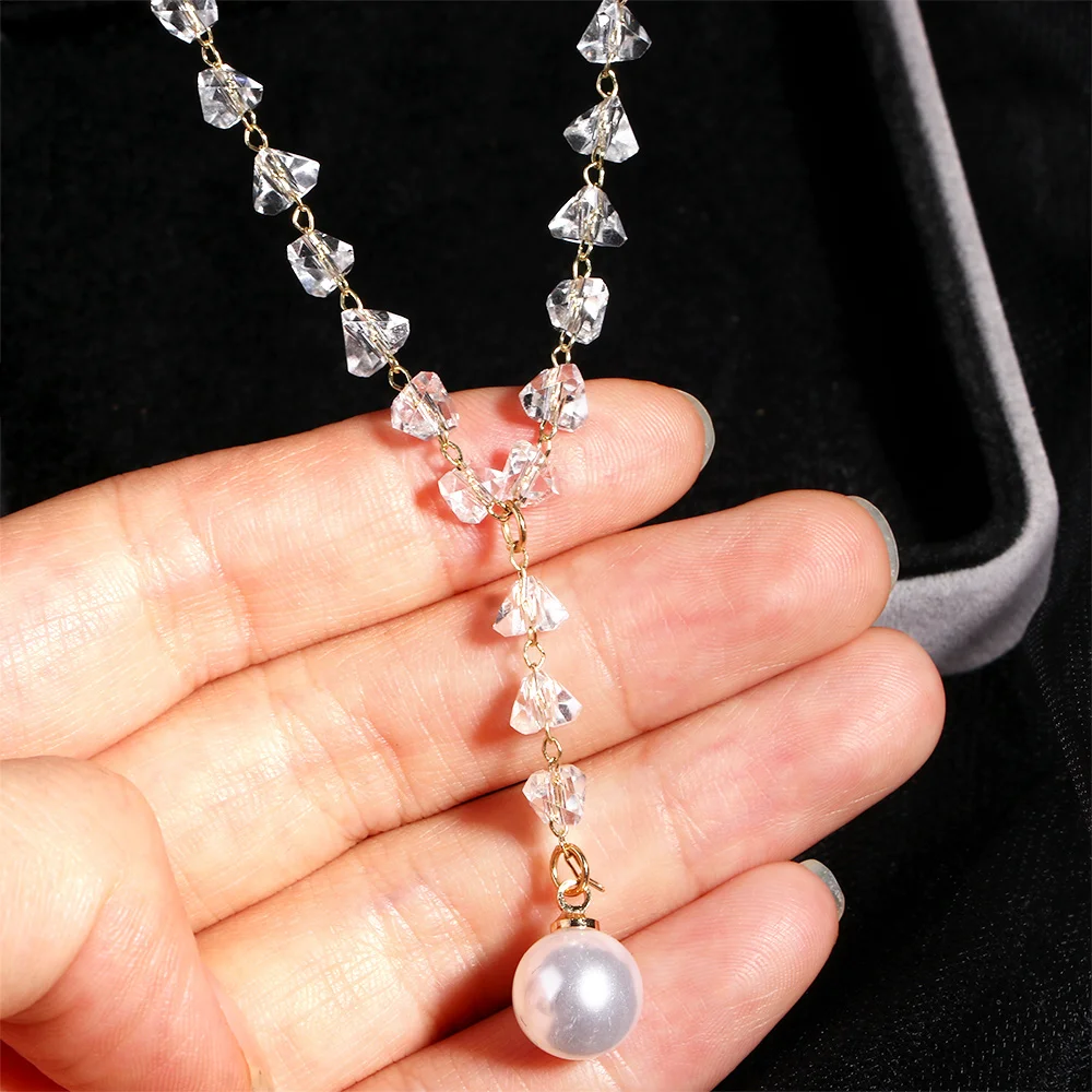 Модное ювелирное изделие, роскошное белое ожерелье с кристаллами, элегантное белое жемчужное ожерелье с подвеской для выпускного вечера, вечерние ожерелья для женщин