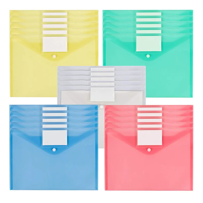 25 упаковок, пластиковая прозрачная папка с карманом для этикеток/защелкой, размером А4, конверты для школы, дома, офиса
