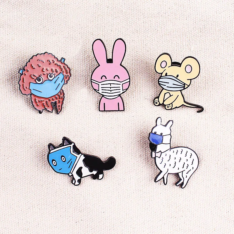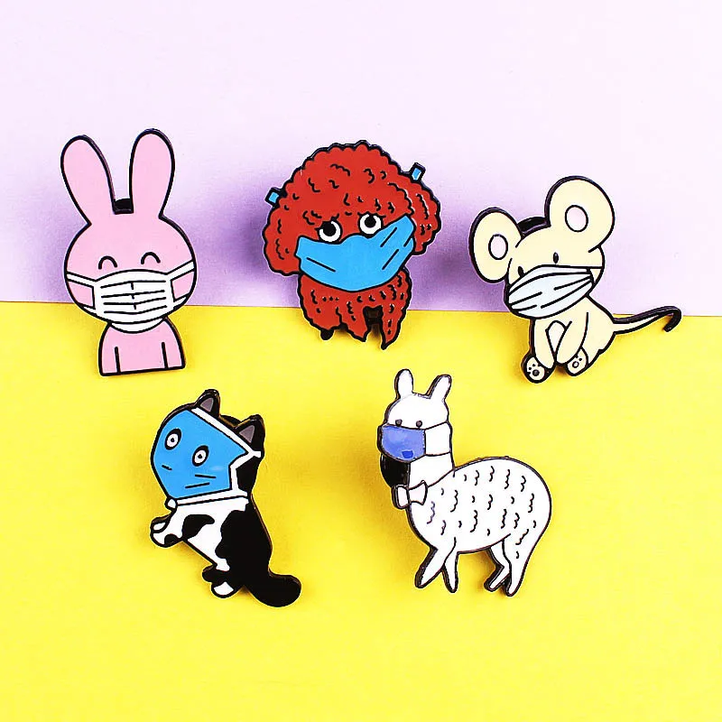 Мультяшная брошь из сплава цинка с животными в масках Модный милый значок с собакой булавка Забавный трендовый наружный рюкзак для одежды ювелирное изделие подарок