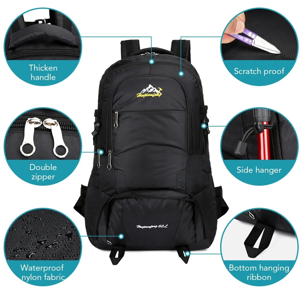 Водонепроницаемый, износостойкий и прочный рюкзак с большой емкостью, очень подходит для активного отдыха, таких как треккинг, туризм, кемпинг, альпинизм и т. д.