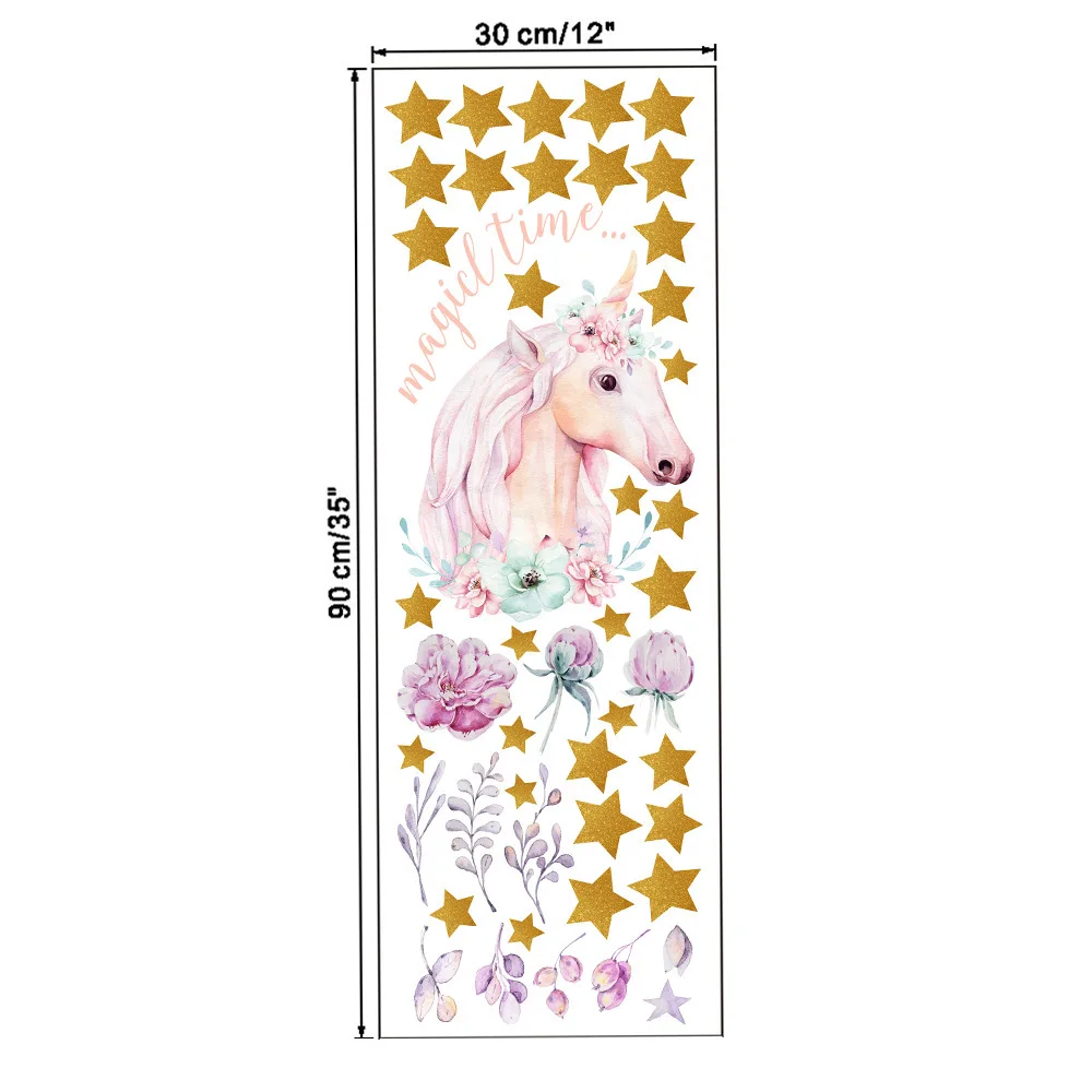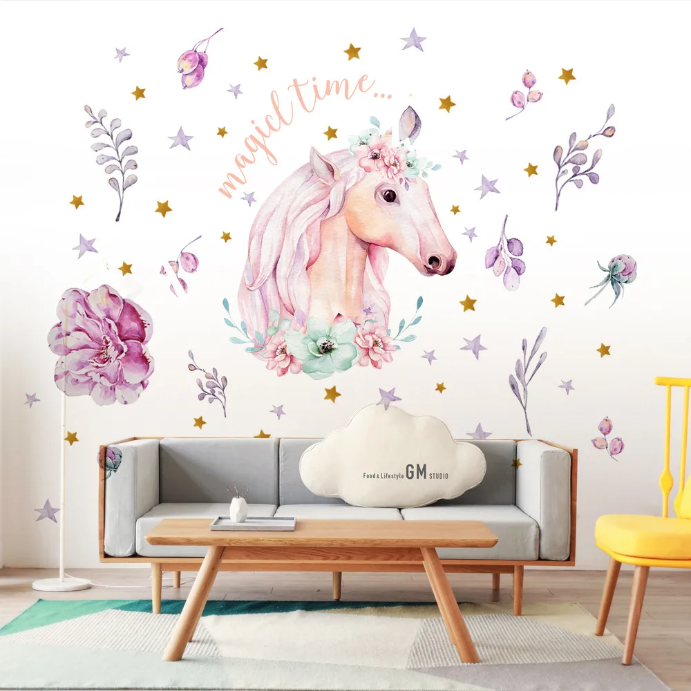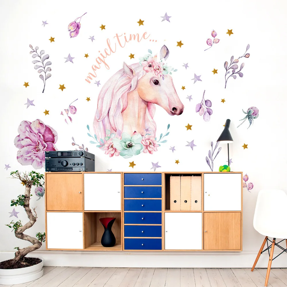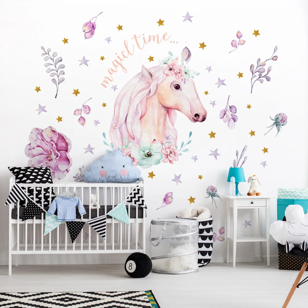Ручная роспись Роза цветок Единорог звезда Наклейка на стену детская комната украшение на стену виниловые обои стикер домашний декор