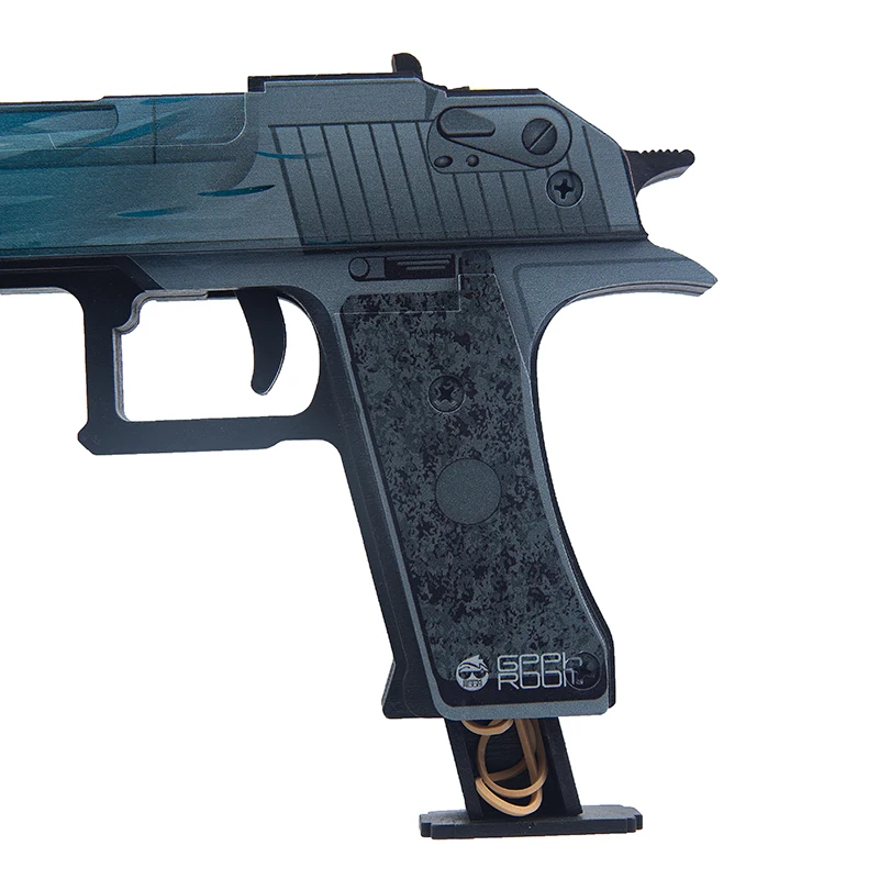 Сувенирный пистолет - Резинкострел Desert eagle (пустынный орёл) в раскраске Dragon Glass из популярной игры 2.Пистолет из дерева стреляет канцелярскими резинками. Вместо пистолета с пульками, пистолет с резинками! Чем меньше диаметр резинки, тем сильнее натяжение и дальность полета. Рекомендуемое количество одновременно заряженных резинок — 6-8 штук.При покупке пистолета игрушки, комплект резинок уже включен в стоимость!Полностью безопасен в использовании, резинками не поранишься. Все игрушки Geekroom произведены на территории России, из экологически чистых материалов, c пристальным вниманием к качеству товара. Такой деревянный пистолет станет отличным подарком взрослым и юным любителям компьютерных игр.Игрушечный пистолет является высококачественной деревянной копией пистолета Desert Eagle из всемирно популярной онлайн игры Стандоф.Размер:Длина: 23 смВысота: 13 смШирина: 2,5 смОкрашен прямой печатью и покрыт лаком.Детский пистолет из дерева абсолютно безопасен и не являются оружием, это сувенирная продукция!