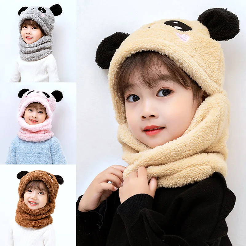 Детские бархатные теплые милые модные комбинезоны для мальчиков и девочек; Сезон осень-зима; Один предмет; Защита ушей для малышей; Шапка с пандой; Ветрозащитная
