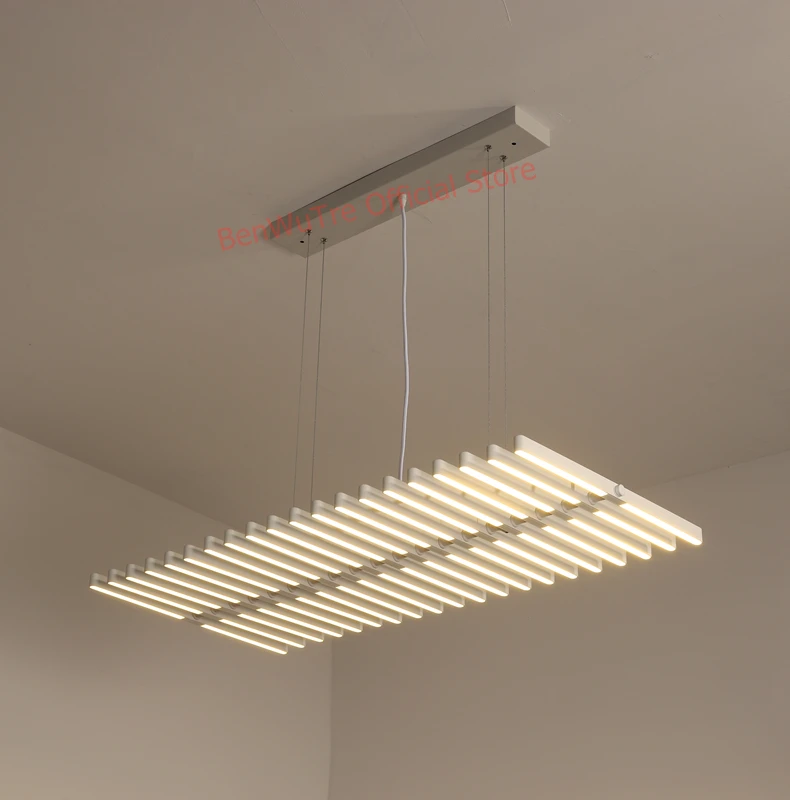 Материалы: железо, акрил, алюминий Светильник источник света: светодиодный чип (оснащена дистанционный пульт, с помощью которой можно регулировать яркость и Цветовая температура (холодный белый светильник-нейтральная светильник-теплый светильник) Процесс: резка, шлифовка Размер: 10 головок (l48 см * w47 см) 20 головок (l97см * w47см) 30 головок (L145cm * W47cm) 40 головок (L190cm * W47cm) Длина одвесных проводов может быть отрегулировано Подходит для: гостиной, столовой, спальни, бара, конференц-зала