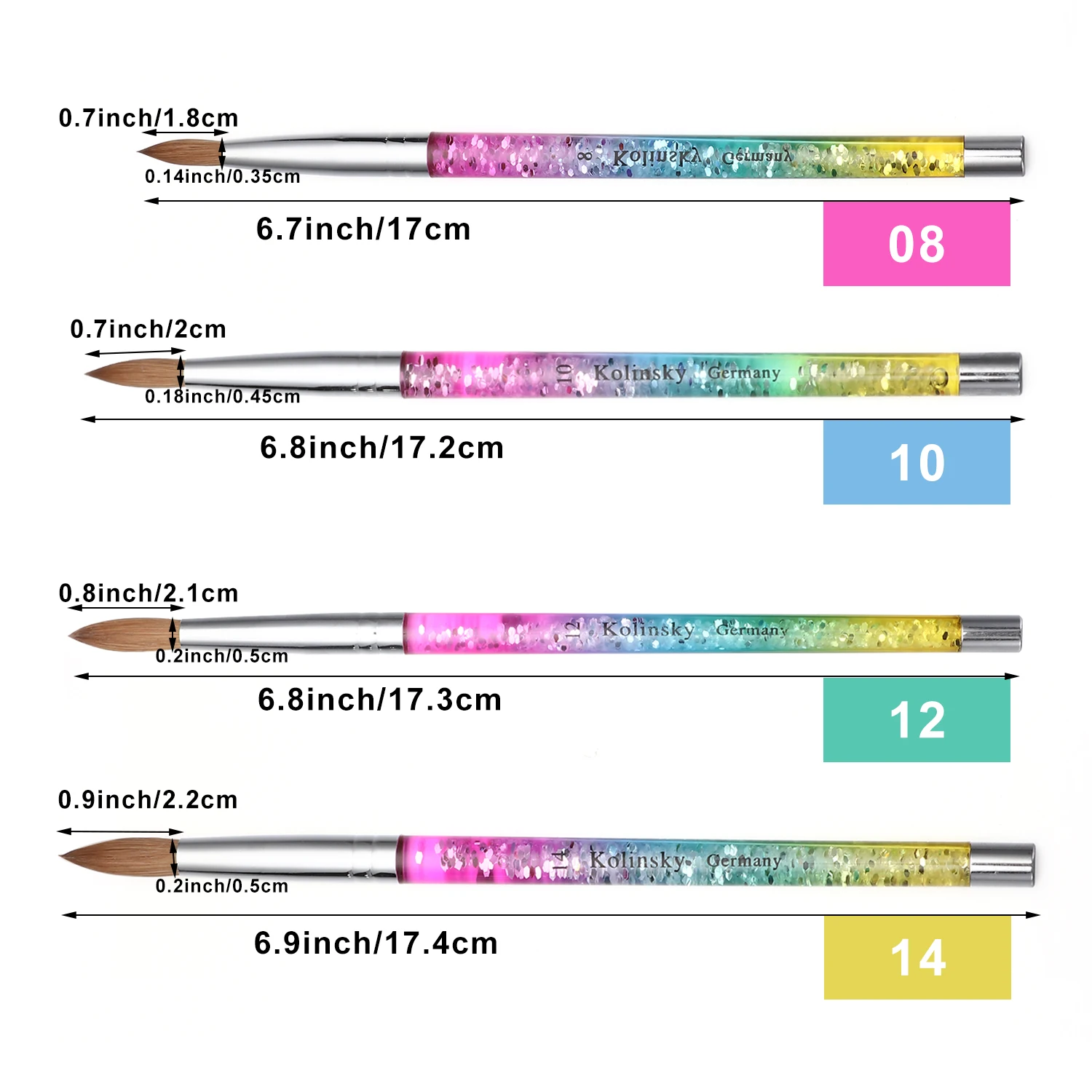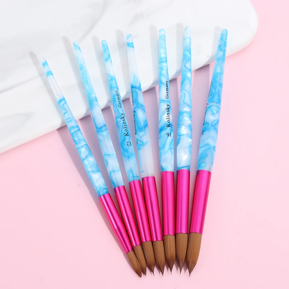 Акриловая кисть для ногтей, чистый колинский волос для акрилового порошка, круглая кисть с розовым жидким блестящим блеском, кисти для ногтей