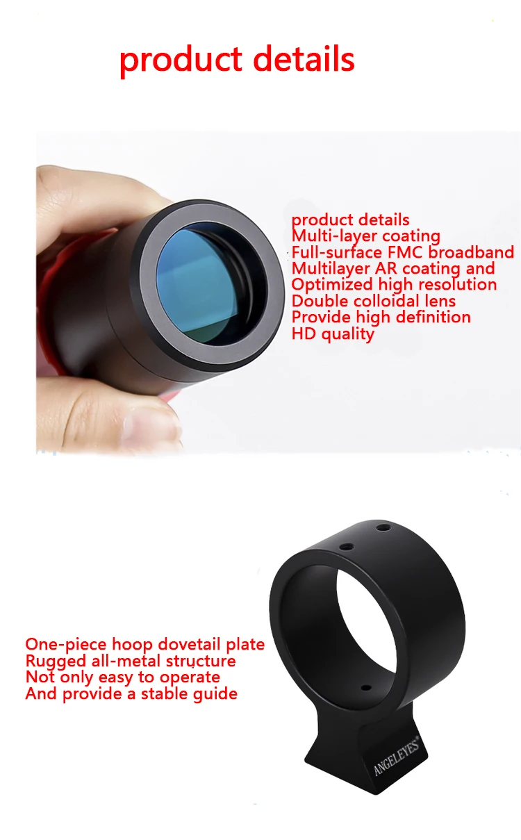 Конфигурация продукта: направляющее Звездное зеркало, пылезащитная крышка, интегрированная ласточкин хвост пластина с обручем, 3 винта