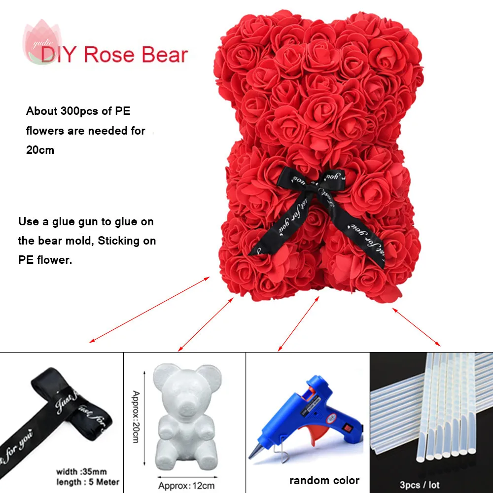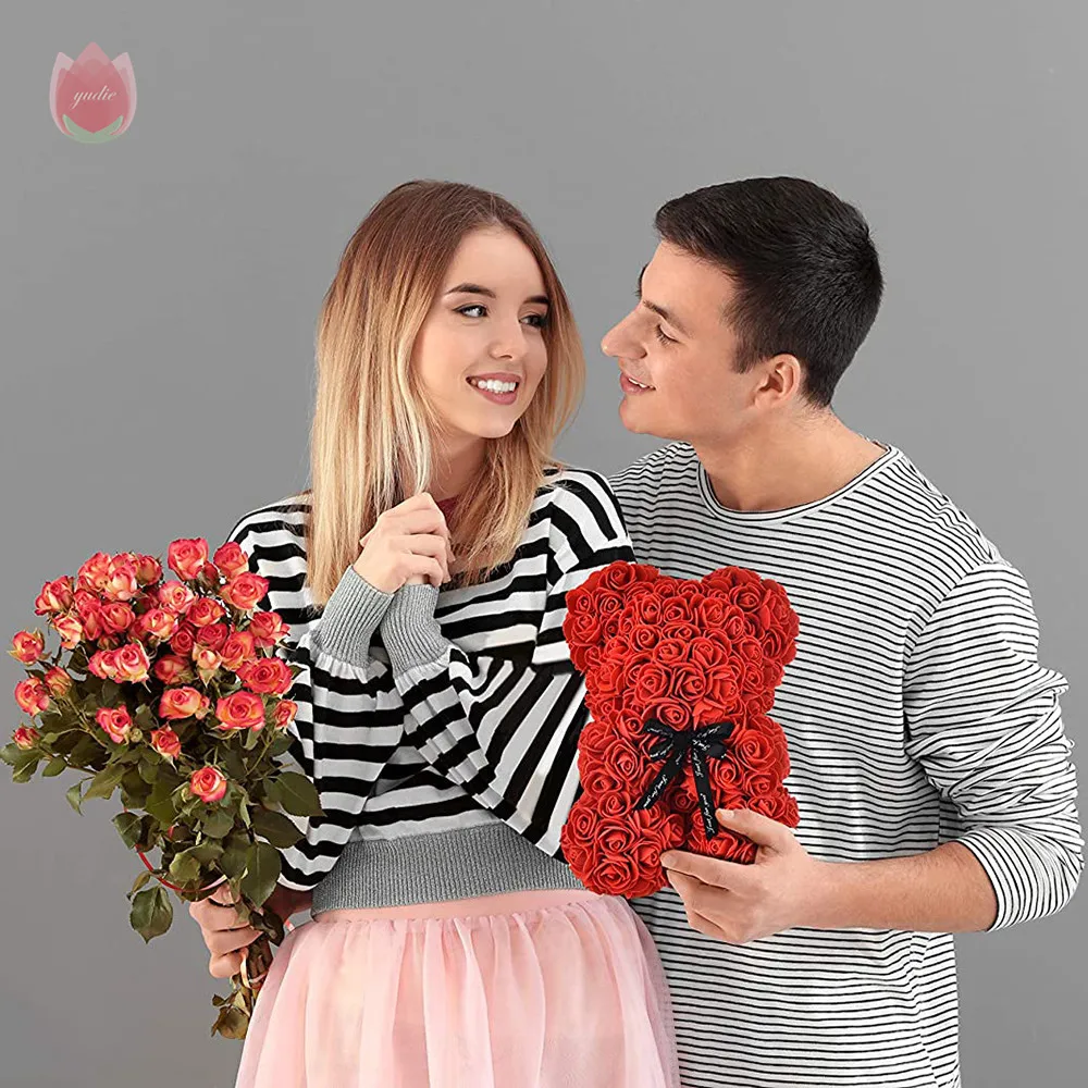 25 см Мишка Тедди розы подарок на день Святого Валентина искусственная Роза DIY Роза аксессуары в виде мишки для дома свадьба день рождения женский подарок