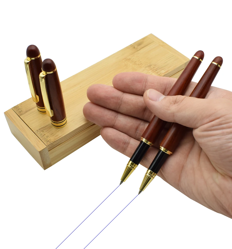 Материал ручки: красное дерево Материал корпуса ручки: бамбук Ручка Размеры: 14,5 см с длинными Ручка чехол Размеры: 16,5*5,6*3,2 см Цвет чернил: черный, синий Посылка включает в себя: 2 ручки из красного дерева и 1 чехол из бамбука