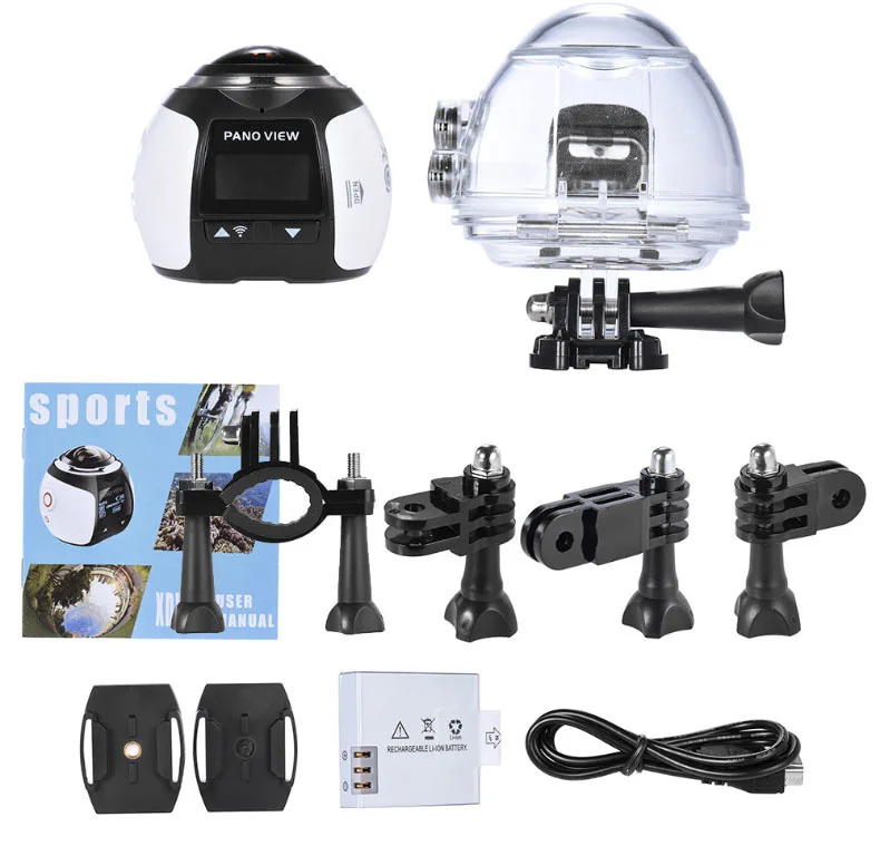 Технические характеристики оборудования: Операционная система: Linux Язык: китайский, английский, поддержка нескольких языков Процессор: Allwinner V3 ARM @ Cortex-A7 1,2 GHZ/H. 264 видеокодер SDRAM: DDR3 2 Гб 667 МГц WIFI модуль: RTL8189ETV (IEEE 802,11/b/g/n 2,4 ГГц) Расширенное хранилище: tf-карта, до 128 ГБ ЖК-дисплей: 0,96 "128*64 TFT Датчик изображения: Для Sony IMX179 8M 1/3.2 дюйма BSI CMOS Объектив: 8G + IR,FNO2.4,FOV:220 Выход HDMI: HDMI 1,4 Usb-порт: Micro USB 2,0 (источник питания постоянного тока 5 В/1 а) Светодиодный рабочий светильник: Поддержка WIFI, запись, зарядка Аудиомагнитола: Поддержка Динамик: 8 Ом 0,8 Вт Ключ работы: питание (режим)/вверх/вниз/затвор (ок) Батарея жизни: 3,7 V 1200ma/H 1080P/60FPS видео Запись 120 минут Функциональная спецификация: Панорамный видеокодер H.264: 4K: 2448*2448 30 кадров в секунду/2048*2048 30 кадров в секунду/1440*1440 60 кадров в секунду и 30 кадров в секунду/1072*1072 60 кадров в секунду и 30 кадров в секунду Функция фотографирования: панорамная (5 м/8 м/12 м/16 м) Драма выстрел/время съемки: Поддержка Медленная съемка/покадровая съемка/циклическая запись: Поддержка Запись вождения: Поддержка Пульт дистанционного управления: Поддержка ИК-контроллера или RF2.4 управляющего устройства Функция энергосбережения: Поддержка Режим USB: поддержка мобильного диска/зарядки Обновление прошивки: Поддержка tf-карты Android APK, приложение apple: поддержка, поиск "XDV-360" Приложение windows: Поддержка windows xp , windows 7,windows 8,1, windows 10 Стандартный Упаковочный лист: 1x360 камера 1 х водонепроницаемый чехол (подводный стандарт 30 м) 1 x кронштейн для велосипеда 2 x основание для шлема 3 x поддержка переключателя 1 кабель для передачи данных 1 x Руководство пользователя