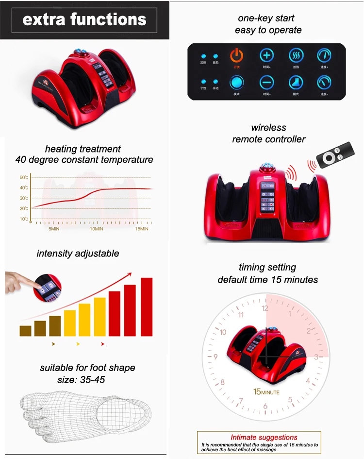 2). С разминанием и массажем шиацу, активирует суставы и облегчает усталость ног и улучшает кровообращение;