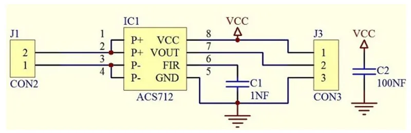 Using the original ACS712ELCTR-20A chip, it can measure positive and negative 20 amp current, corresponding to analog output is 100mV/A, when the current is zero, the output is the midpoint voltage of the power supply. The default delivery is to match the terminal block, but the terminal block is not soldered.