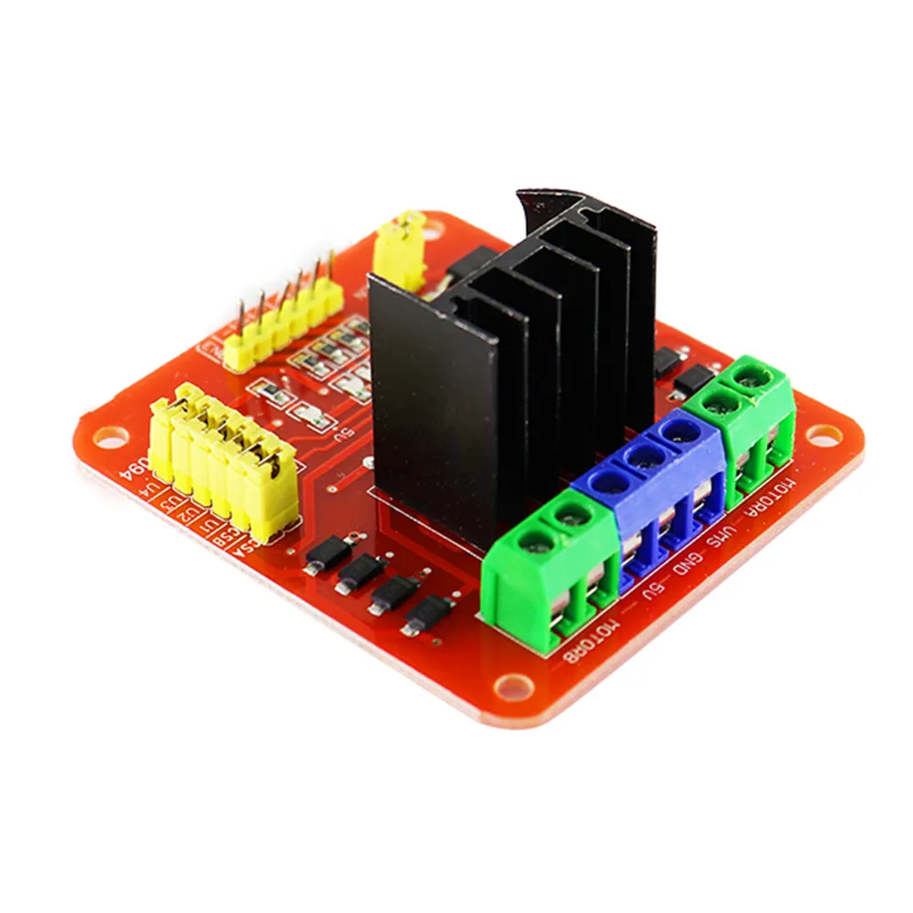 Этот модуль драйвера L298N использует Чип ST L298N, может управлять двумя дорожными двигателями 3-30 В постоянного тока и обеспечивает выходной интерфейс 5 В, может дать 5 v Питание цепи системы, поддержка 3,3 VMCU управления, легко контролировать скорость и направление двигателя постоянного тока, И также может управлять двухфазным шаговым двигателем, является важным умным автомобилем. Чип драйвера: двойной H Мост драйвер L298N чип Ведущая часть блока питания терминала VMS: + 5 v ~ + 35 v Ведущая часть пикового тока Io: 2 a/bridge Логический часть Vss терминал источника питания Диапазон: 4,5 до 5,5 V Логическая часть рабочего диапазона тока: 0 ~ 36 мА Управление сигнала Диапазон входного напряжения: 4,5 5,5 низкий уровень высокого уровня с напряжением 0 В Максимальная потребляемая мощность: 20 Вт Температура хранения: 25 градусов C ~ + 130 градусов C Размер приводной пластины: 55 мм * 60 мм * 30 мм Вес платы водителя: 33 г Другие функции: Управляйте направлением светильник, индикатором питания, датчиком тока, логической частью внутри пластины для электрических интерфейсов.