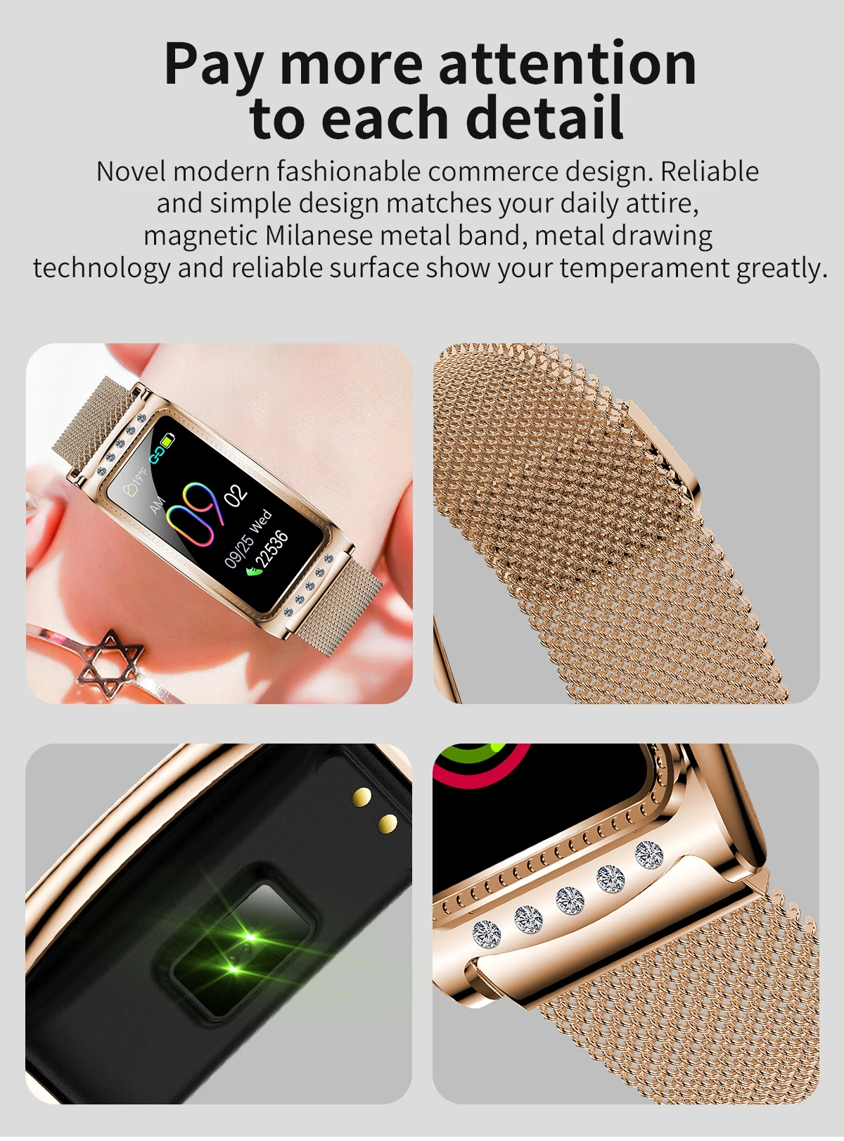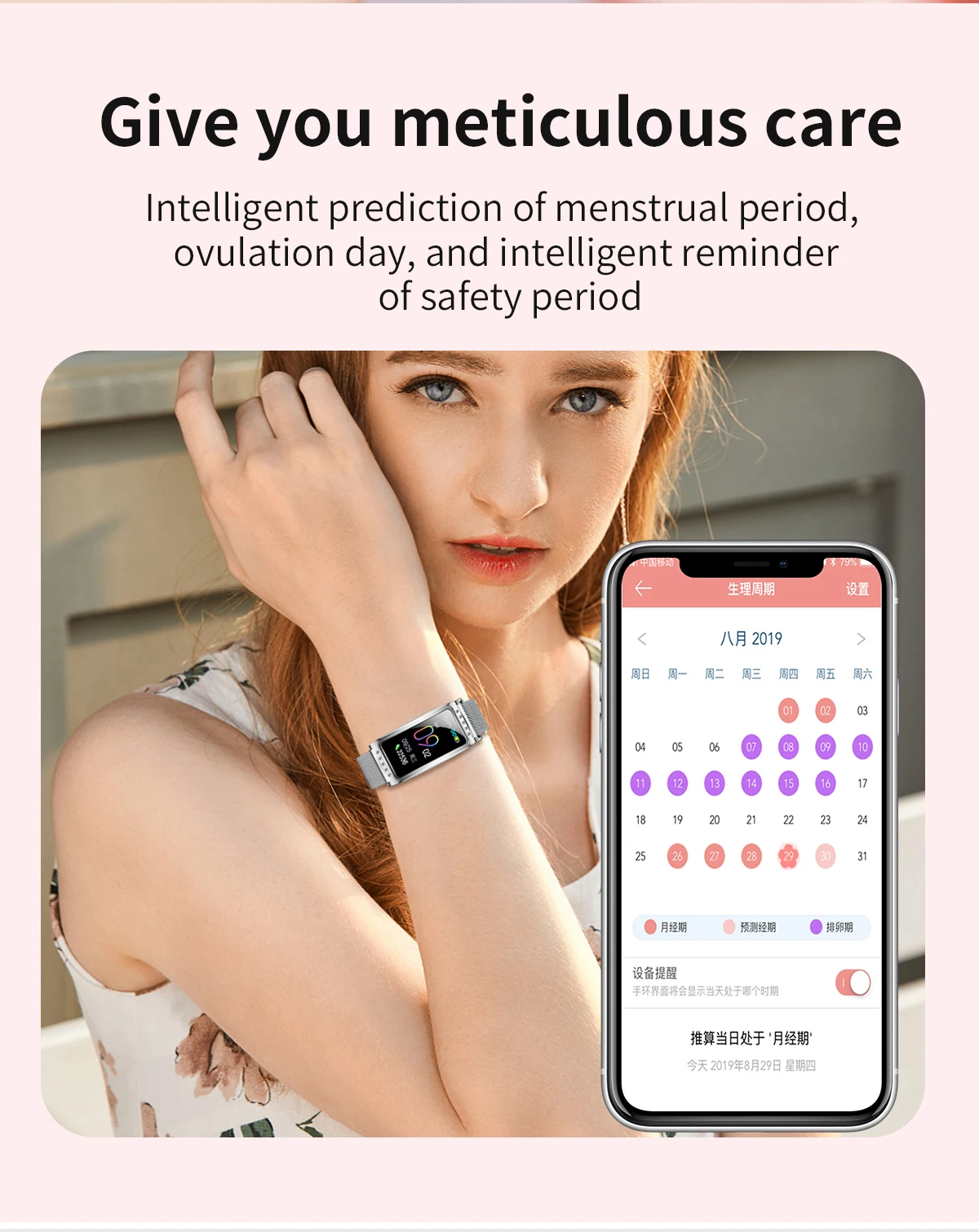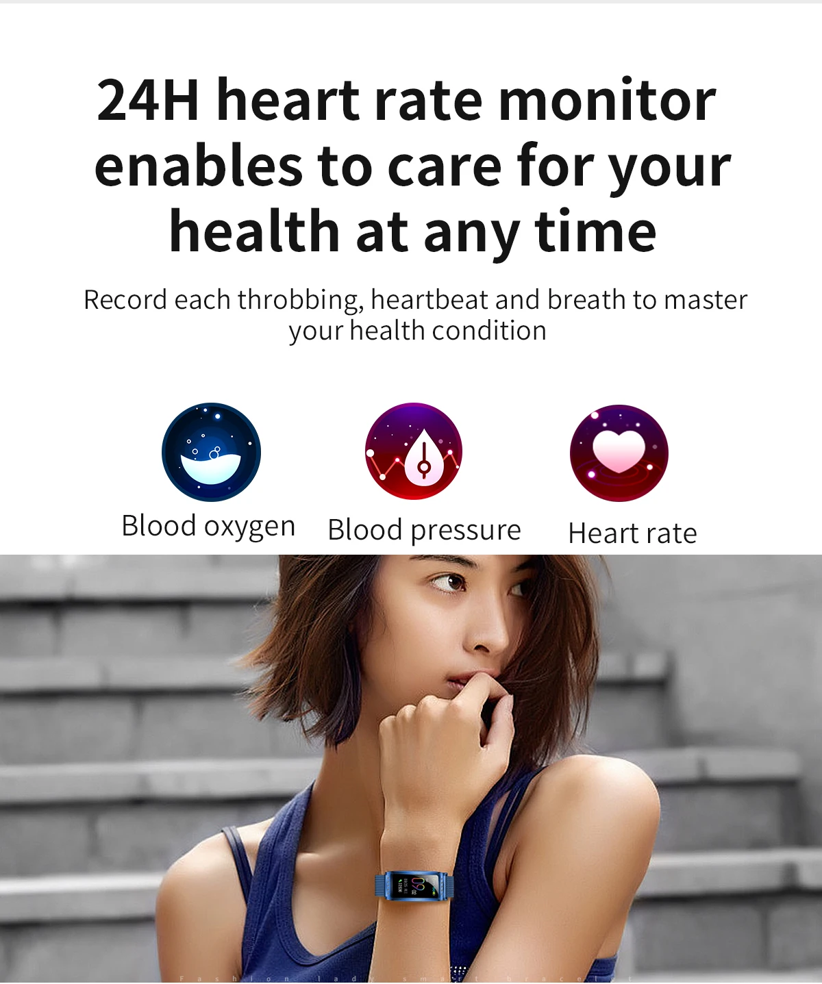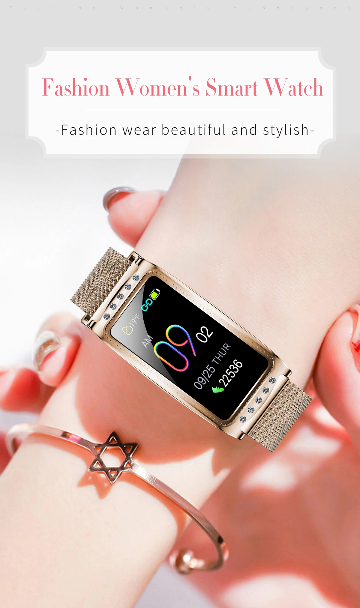 Женский модный браслет, цветной экран, частота сердечных сокращений, кровяное давление, уровень кислорода в крови, режим мульти-упражнений