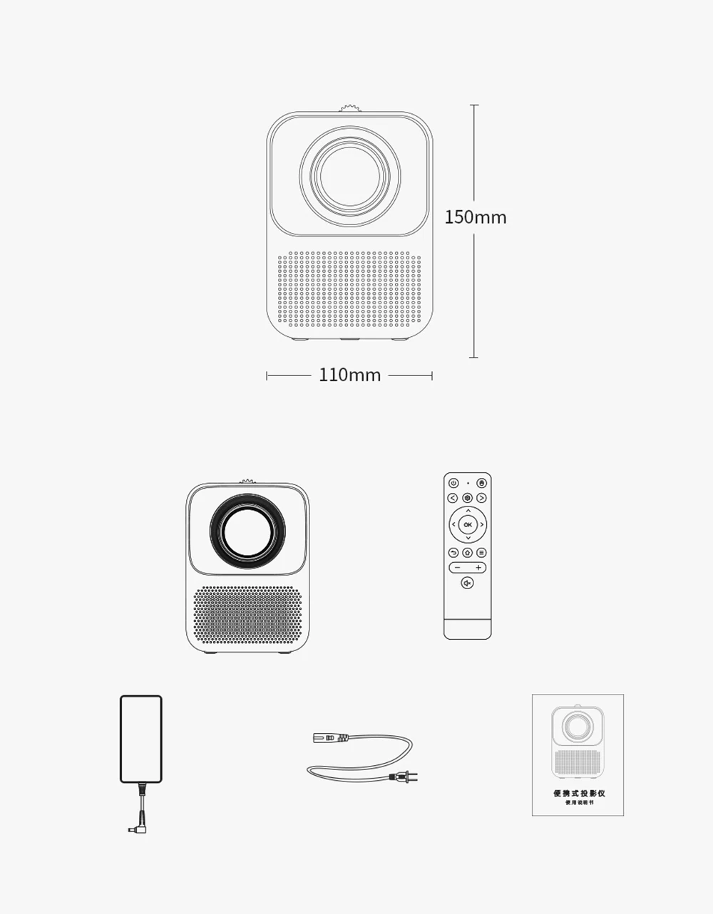 Посылка ходитПроектор/пульт дистанционного управления/адаптер питания/Руководство пользователя* Для безопасной транспортировки мы удалим сухую батарею, пожалуйста, поймите![]()