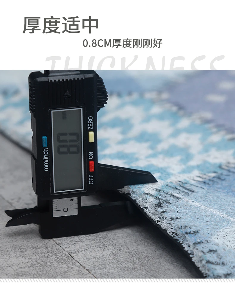 > Толщина дверного коврика составляет около 8 мм, он может полностью лежать на полу и не препятствует открыванию и закрытию двери.