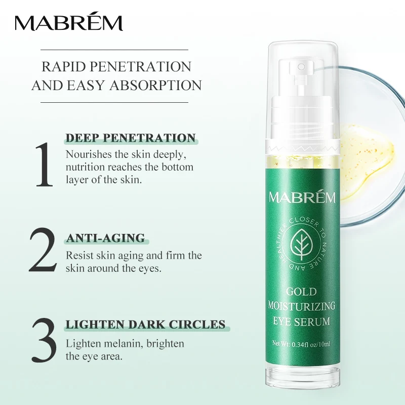 От эссенции золота, пополняет кожу глаз влагой и питанием, оживляет мышцы глаз, снимает сухие и обезвоженные проблемы кожи, затягивает кожу вокруг глаз, сделайте кожу вокруг глаз влажной и нежной, полной эластичности.