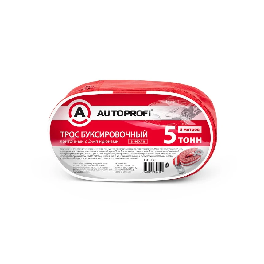 Ленточный буксировочный трос «AUTOPROFI» тягового типа предназначен для плавной буксировки автомобилей и других транспортных средств, общей массой не более 5 тонн, от места поломки (неисправности), по ровной дороге, до места ремонта. Тросы изготавливаются из полипропиленовой мультифиламентной нити, а петли и крепления прошиты прочной капроновой нитью. Полипропиленовая лента отличается надежностью, не деформируется и не впитывает влагу.