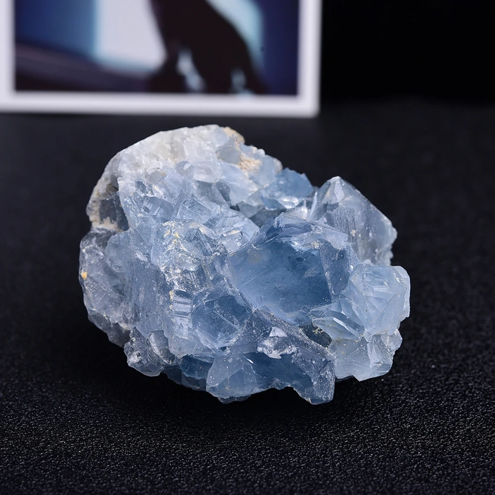 Целестин с украшением в виде кристаллов каждого Приблизительно 0,5-1 см в диаметре, к каждому размеру. Цвет будет отличаться от камня к камню, некоторые будут светлее синим и темнее, это 100% натуральный! Каждый уникальный!