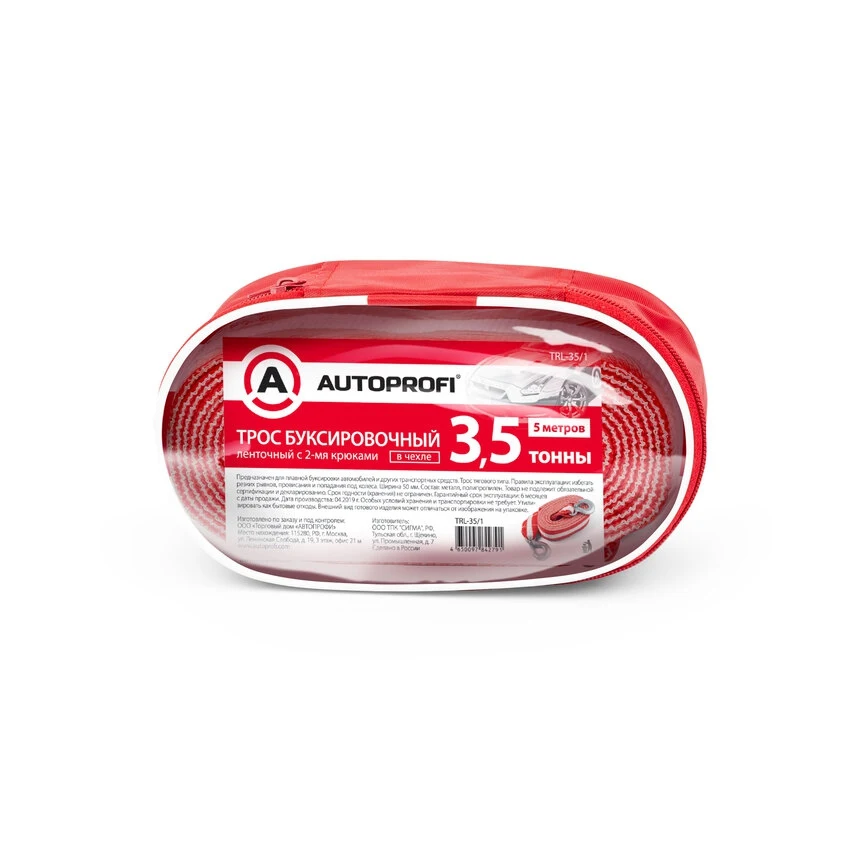 Ленточный буксировочный трос «AUTOPROFI» тягового типа предназначен для плавной буксировки автомобилей и других транспортных средств, общей массой не более 3,5 тонн, от места поломки (неисправности), по ровной дороге, до места ремонта. Тросы изготавливаются из полипропиленовой мультифиламентной нити, а петли и крепления прошиты прочной капроновой нитью. Полипропиленовая лента отличается надежностью, не деформируется и не впитывает влагу.