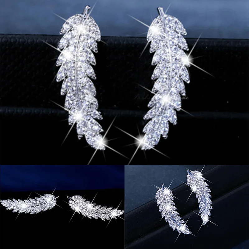 Модное перо, шпильки, серьги для женщин, серебро 925 пробы, золото, розовое золото, ювелирные изделия, пара/набор