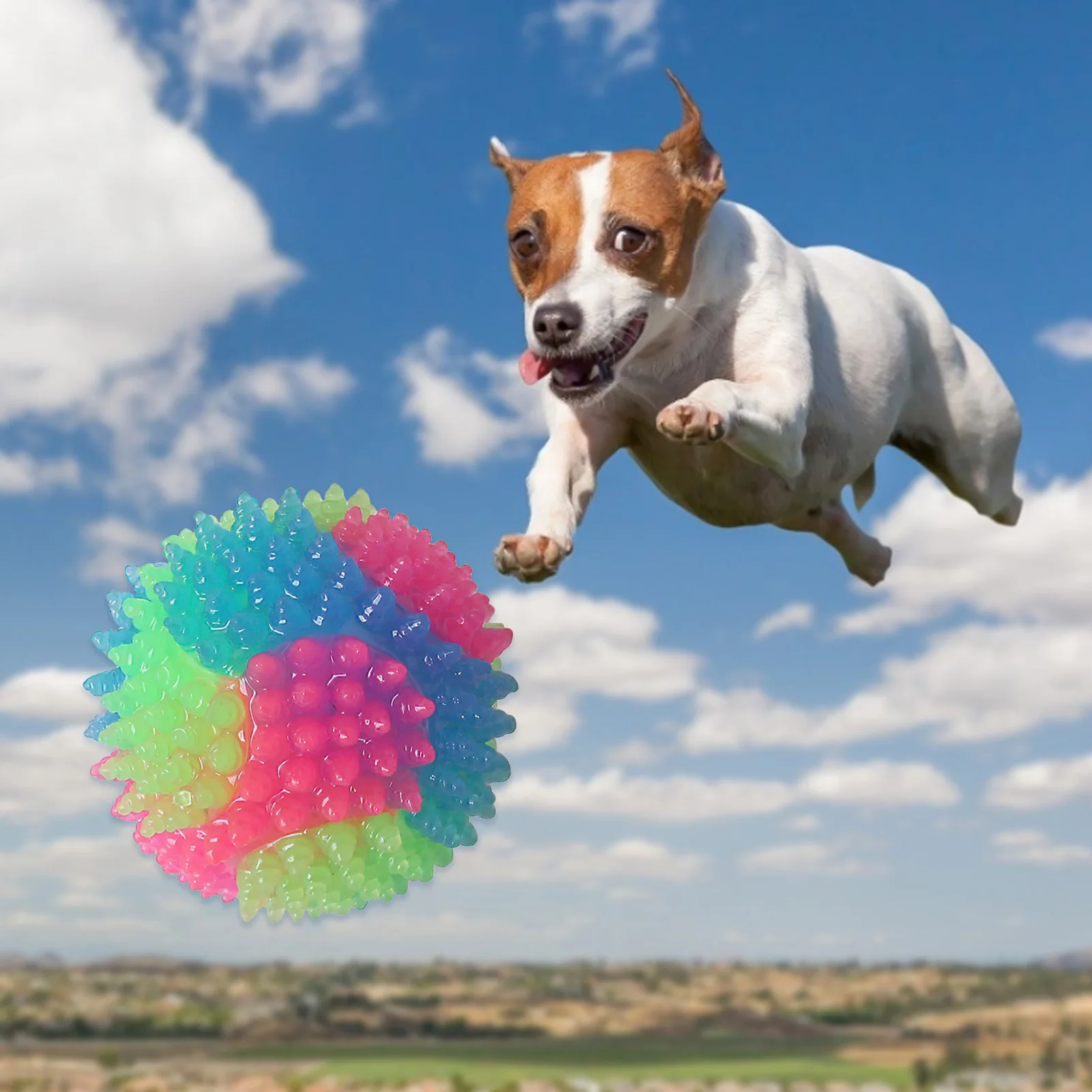 1. Высокоэластичная игрушка с шариком-вспышкой: Звуковой шар для домашних животных изготовлен из высококачественного TPR, который вставляет вспышку и может подпрыгивать и мигать красочные огни. Это может привлечь внимание домашних животных, так что вы можете играть с вашими питомцами.1 * светящийся собачий шар