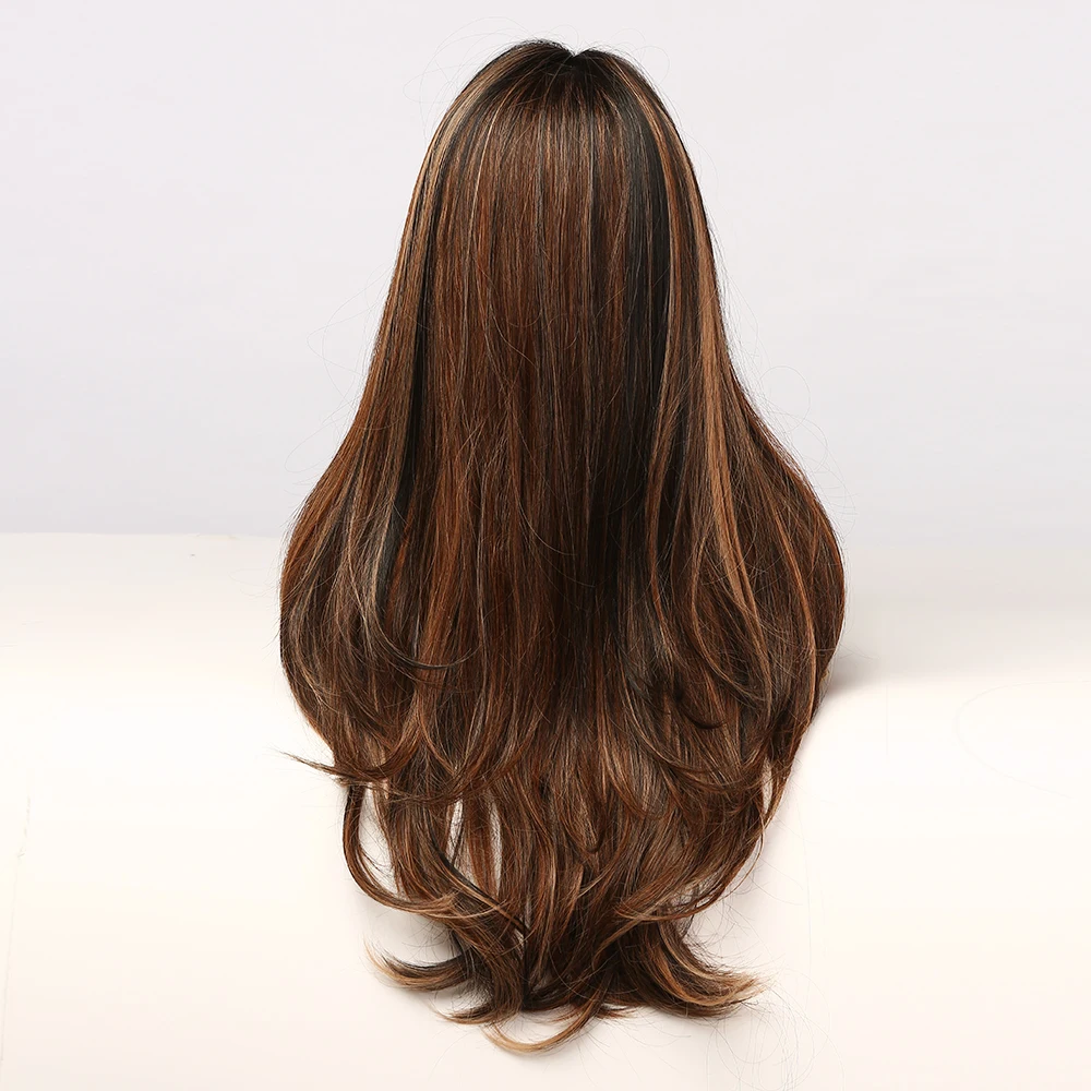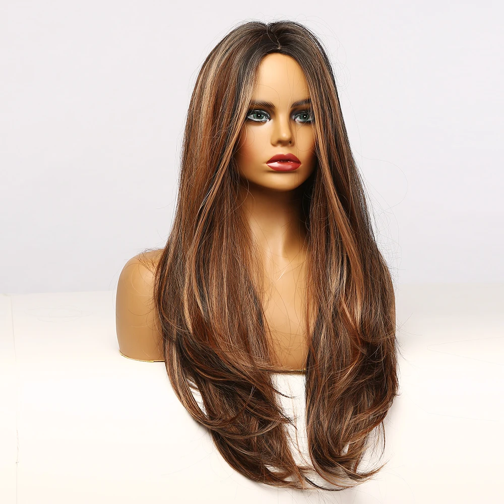 Парики из натуральных синтетических волос GEMMA, средняя часть, для черных женщин, длинные волнистые волосы, косплей, черный, коричневый, золотой, яркий парик, термостойкие