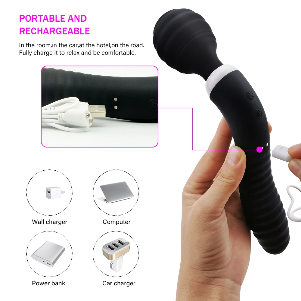Вращающийся на 360 градусов массаж тела Мощный Волшебная палочка массажер AV палочка вибратор секс-товары USB Перезаряжаемый вибратор секс-игрушка для женщин